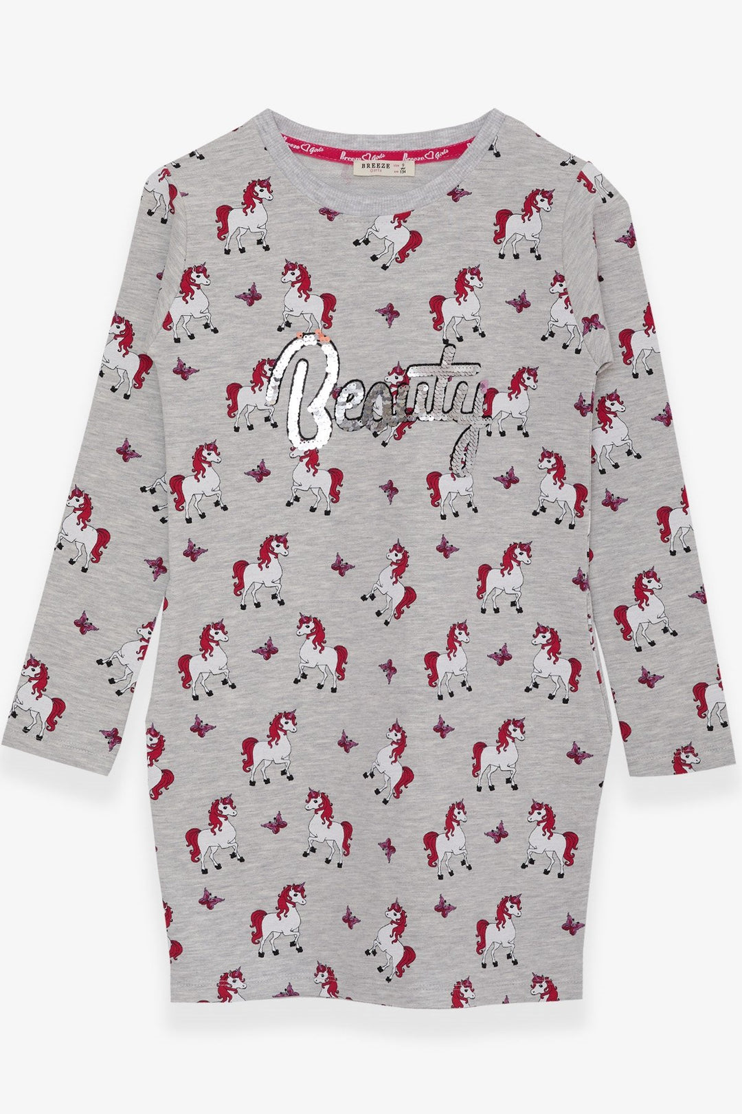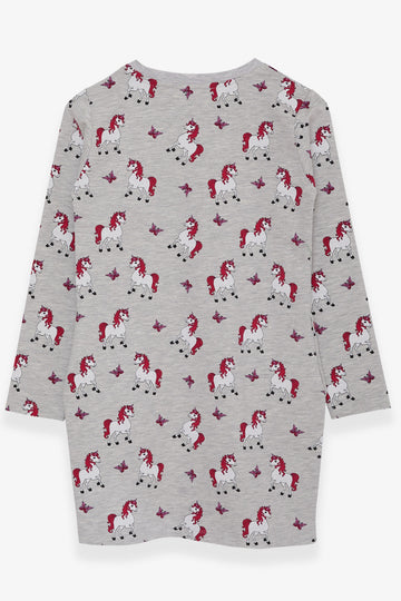 BRE Breeze Girl's Tunic with Unicorn Pattern, 4-9 Years, Light Grey Melange - Paterno