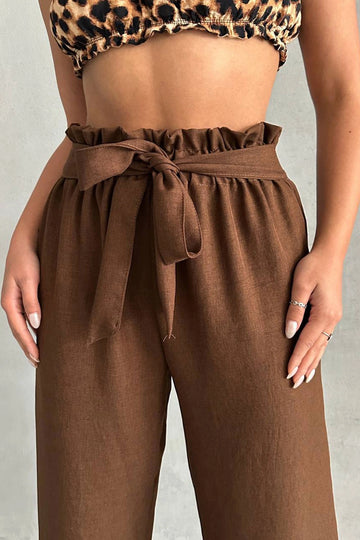 Brown Belted Linen Woven Trousers BCHN-2525329 - Caldas da Rainha