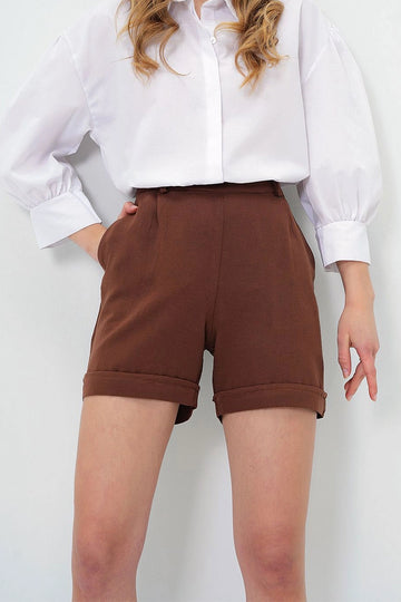 Brown Double Pleated Hidden Zipper Summer Linen Woven Shorts BCIR-251002 - Remscheid