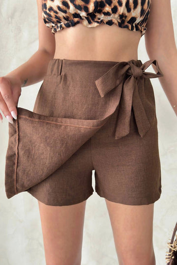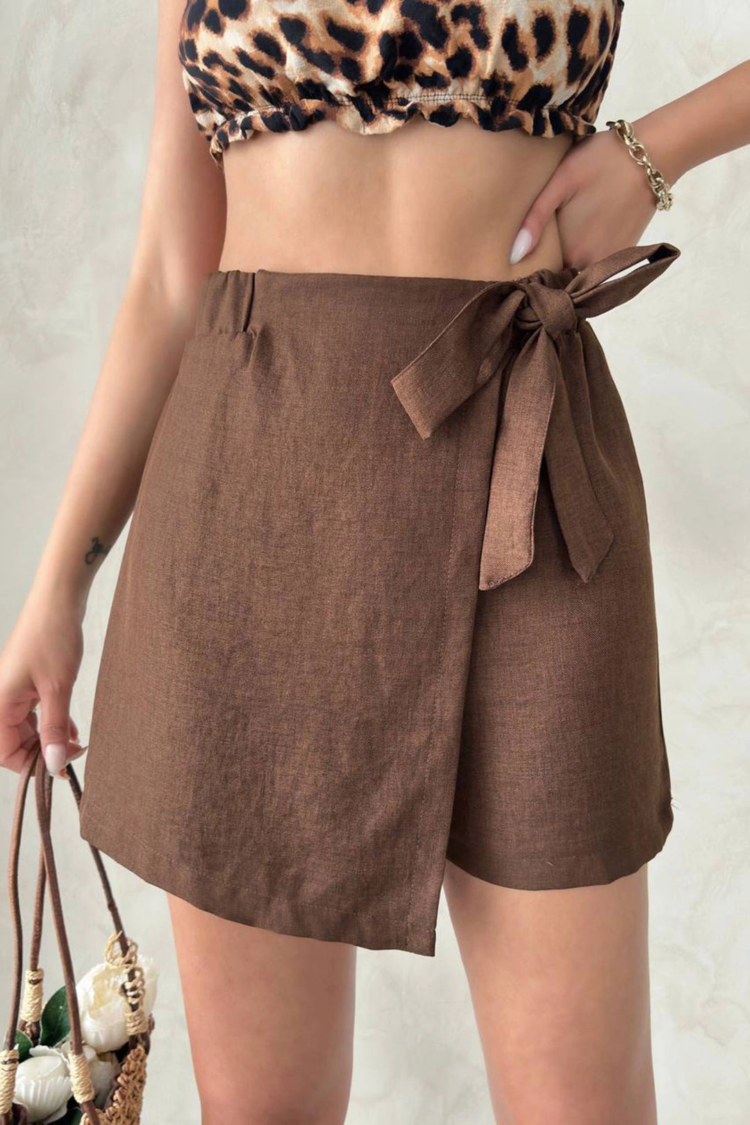 Brown Bow Front Split Woven Shorts Skirt BCHN-25255021 - Rancho Cucamonga