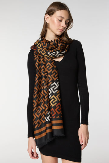 Brown Chain Patterned Shawl BCNSV-2515073 - Howell