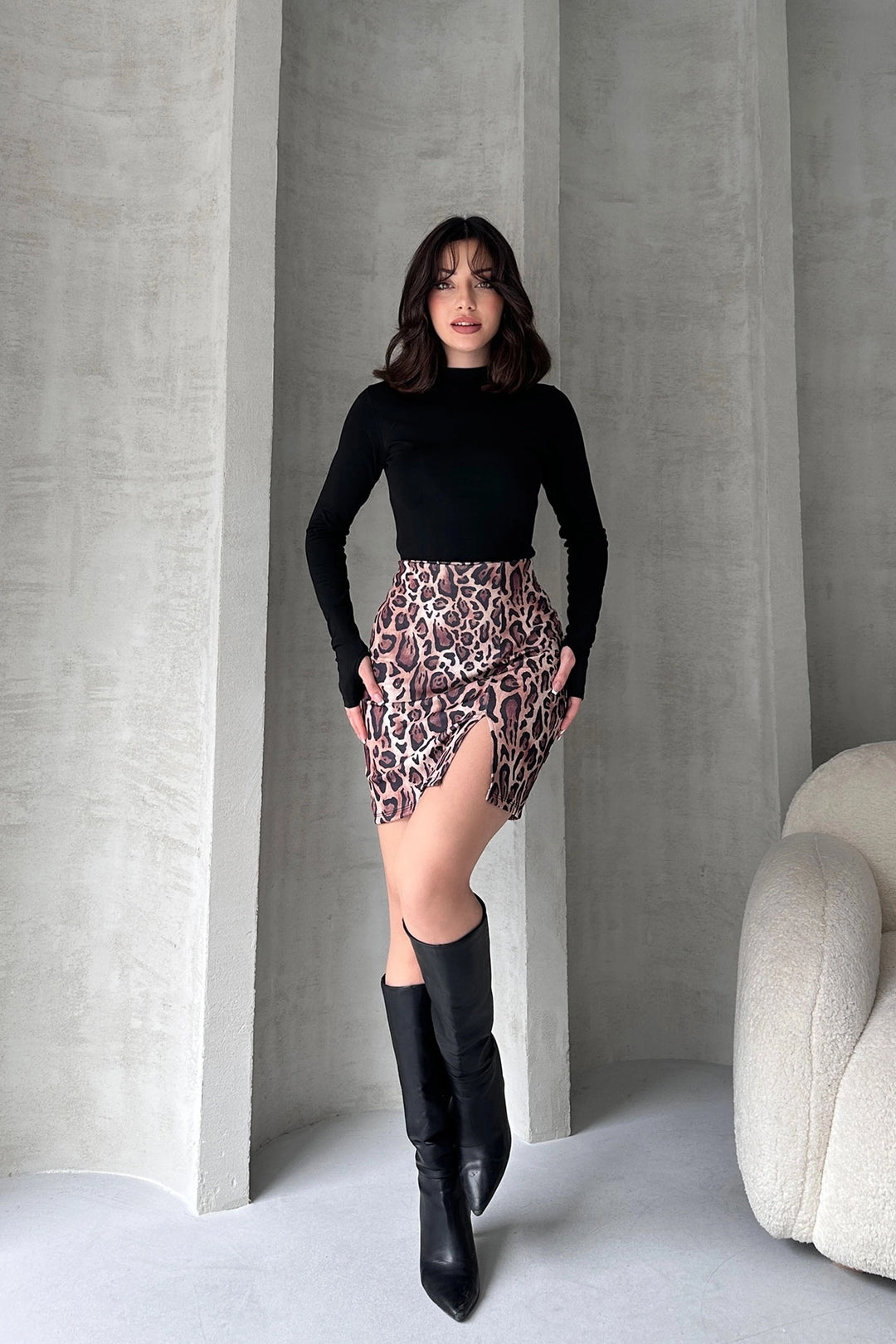 Brown Leopard Print Slit Mini Skirt BCDF-242144 - West Des Moines