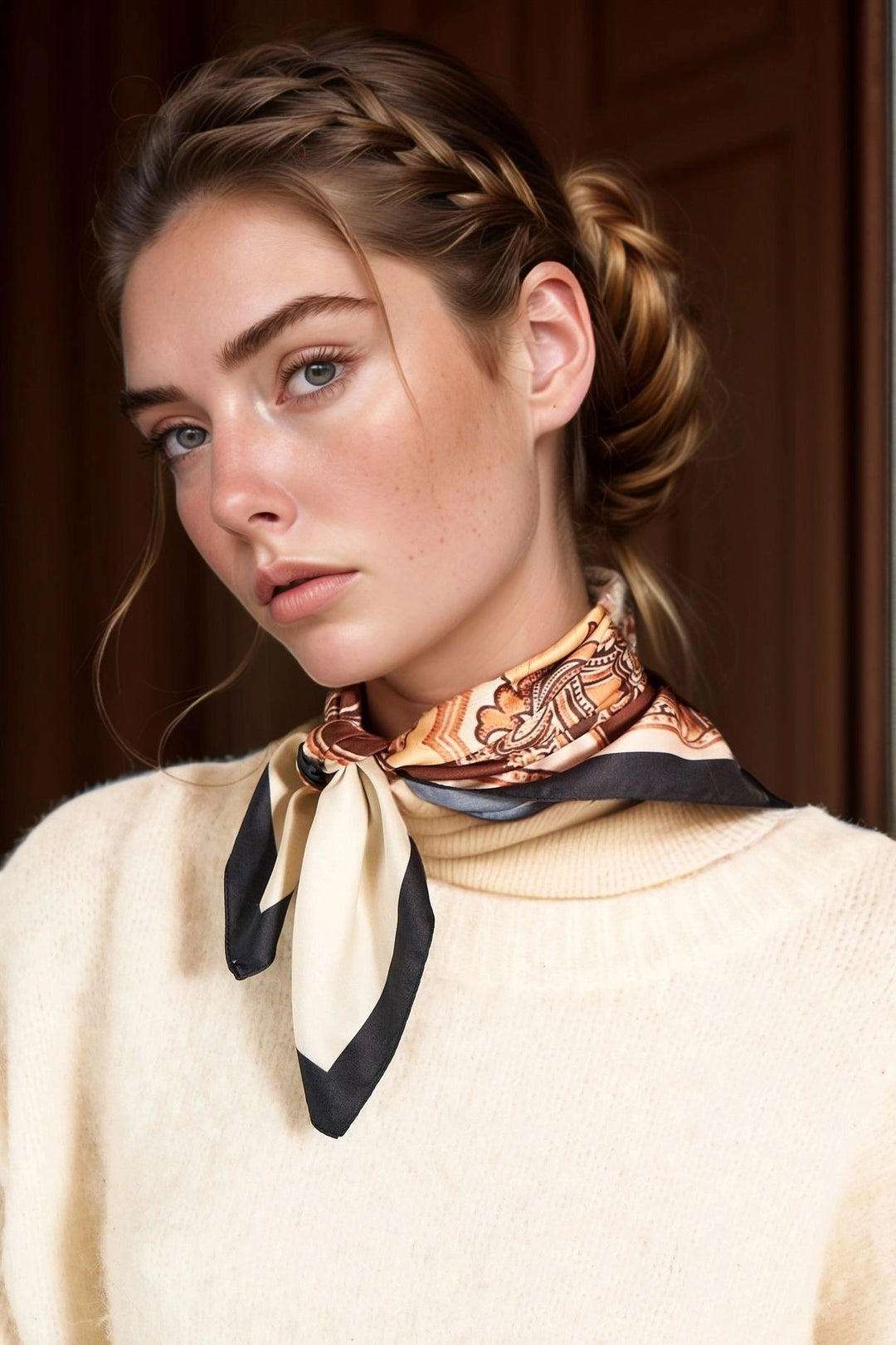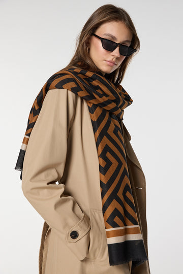 Brown Geometric Patterned Bandana Scarf BCNSV-25WT1031 - La Mesa