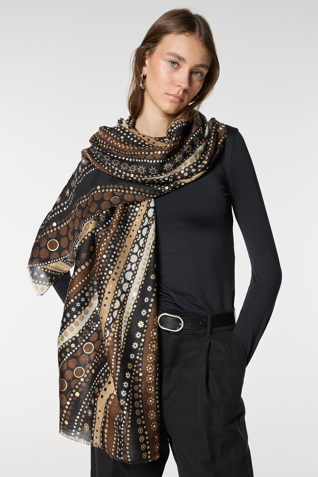 Brown Multi-Patterned Fringed Shawl BCNSV-2515069 - Fresno