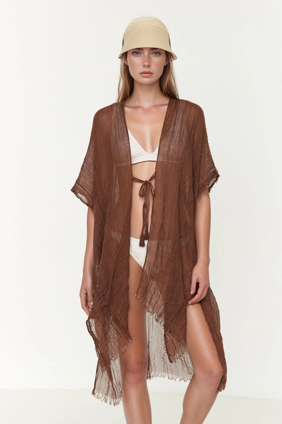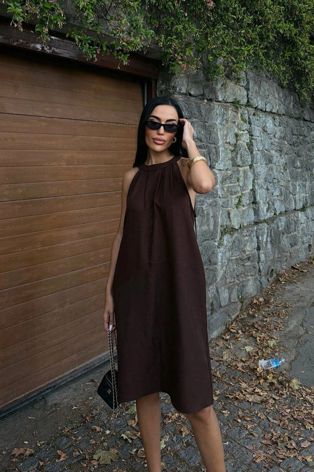 Brown Linen Woven Dress with Hidden Pockets BCDF-25255029 - Mesa