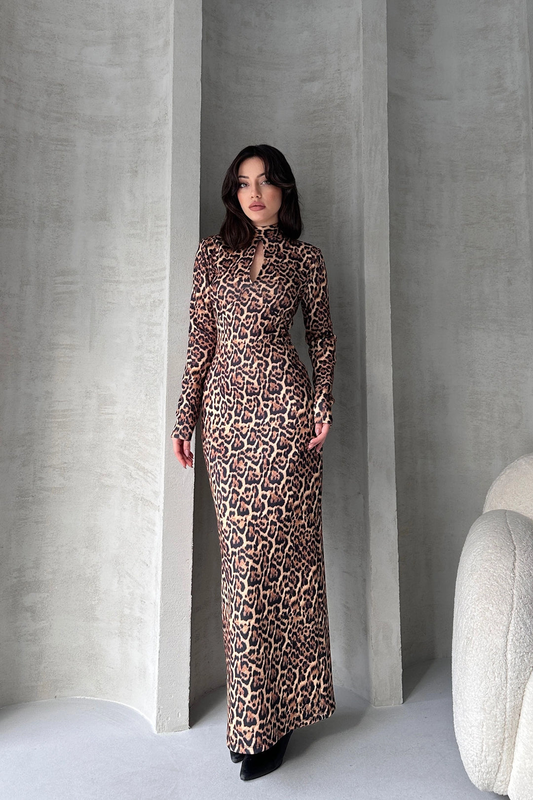 Brown Leopard Print Midi Dress BCDF-242149 - Mount Laurel