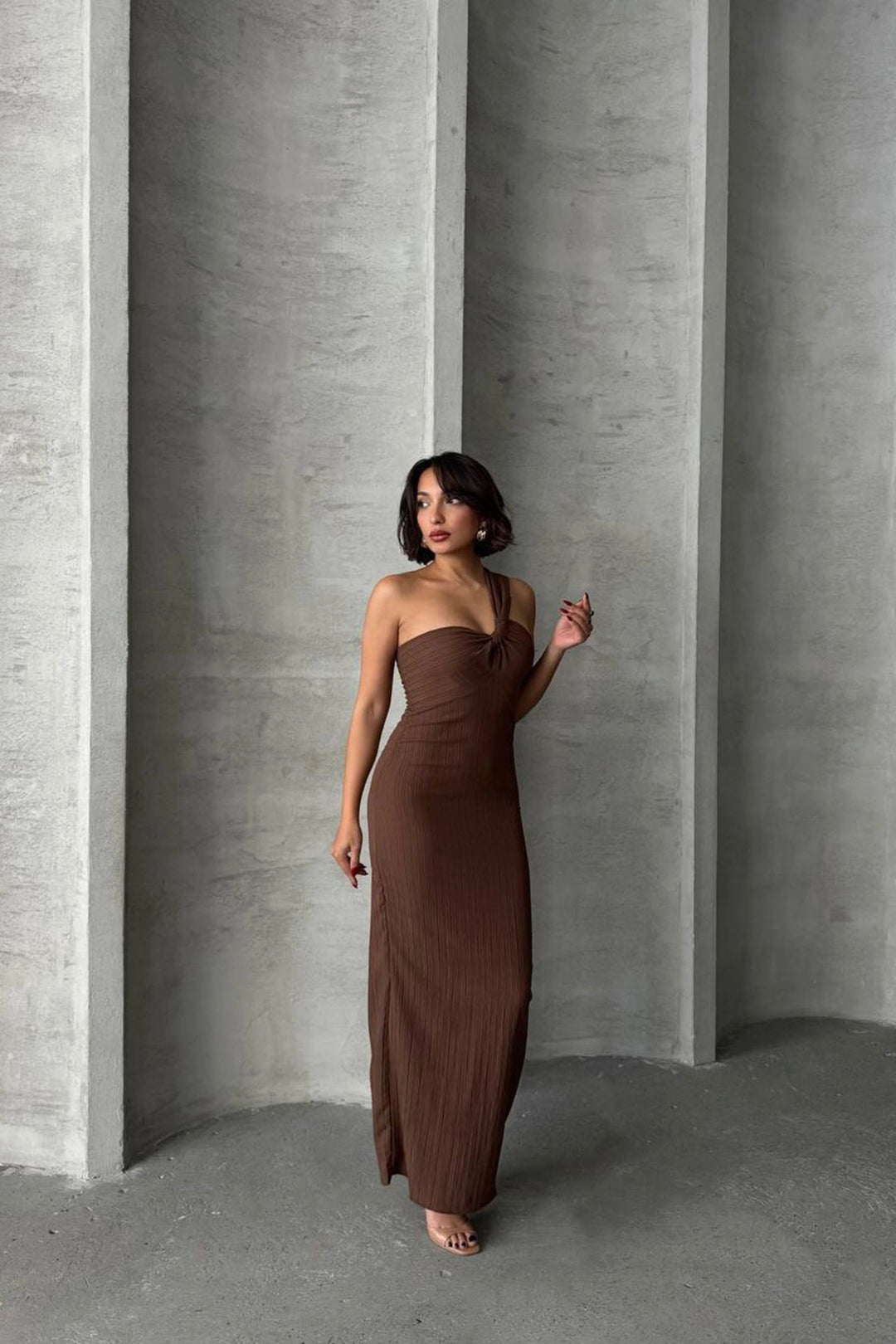 Brown Maxi Dress with Single Shoulder Detail BCHN-2525455 - Newark