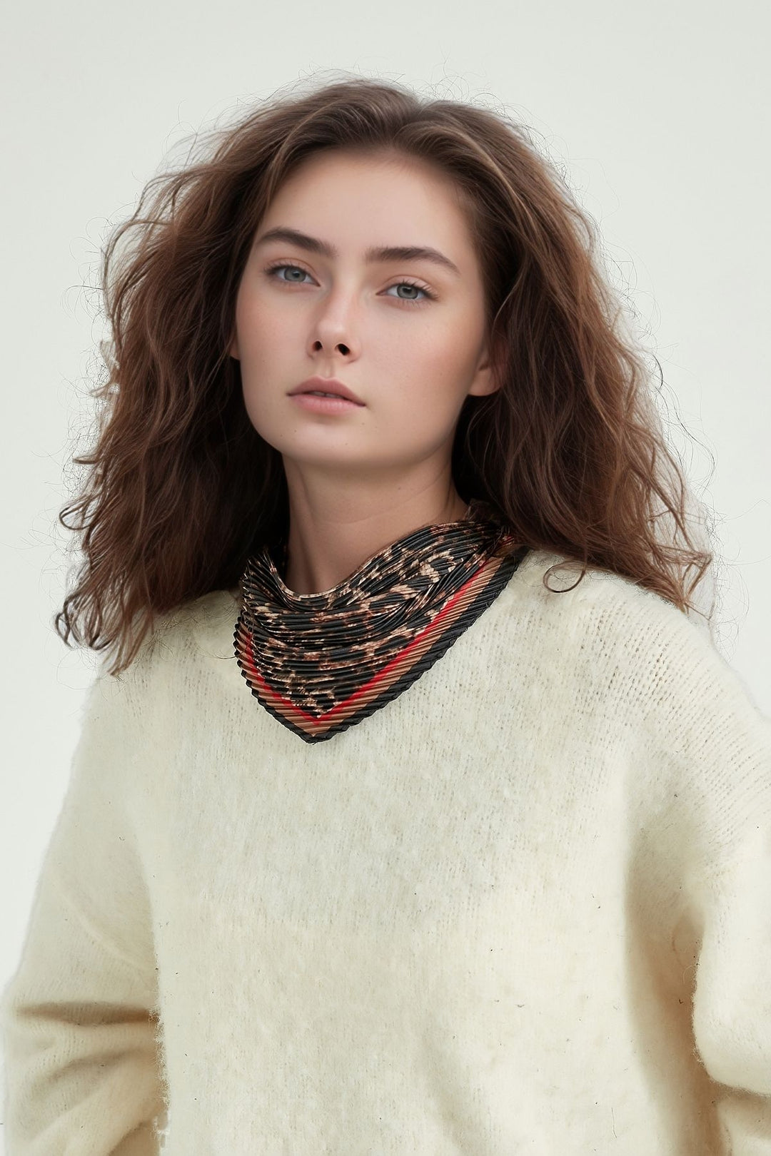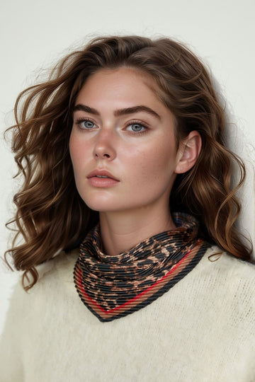 Brown Leopard Patterned Pleated Bandana / Scarf BCNSV-2513485 - Beaumont