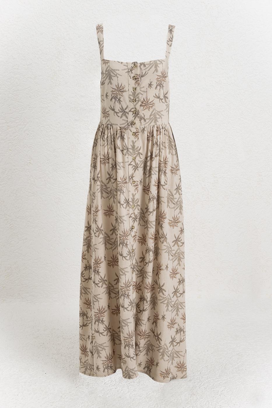 BSL Women Buttoned Strappy Linen Blend Midi Dress - Chenalhó