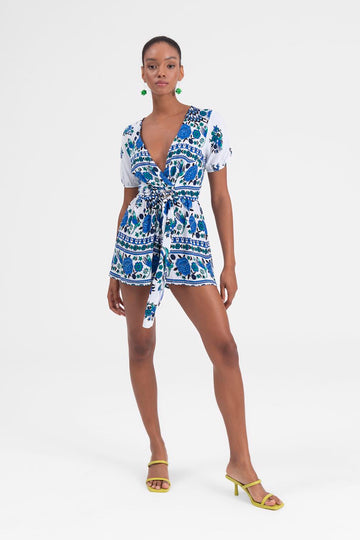 BSL Women Double Breasted Closure Tie Blouse - Miami Beach