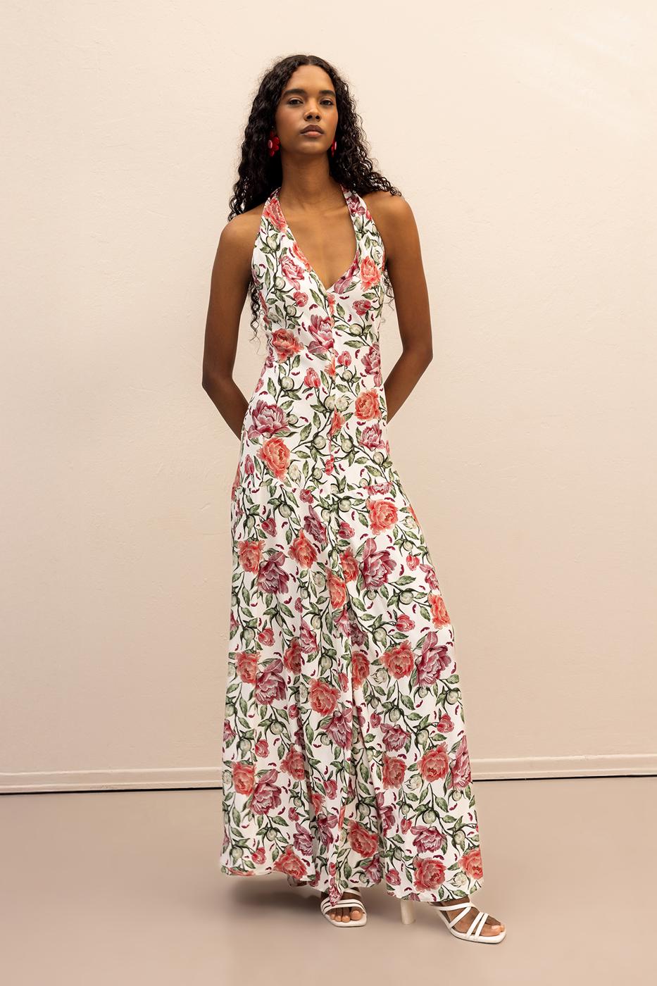 BSL Women Halter Neck Patterned Midi Dress - Roseville
