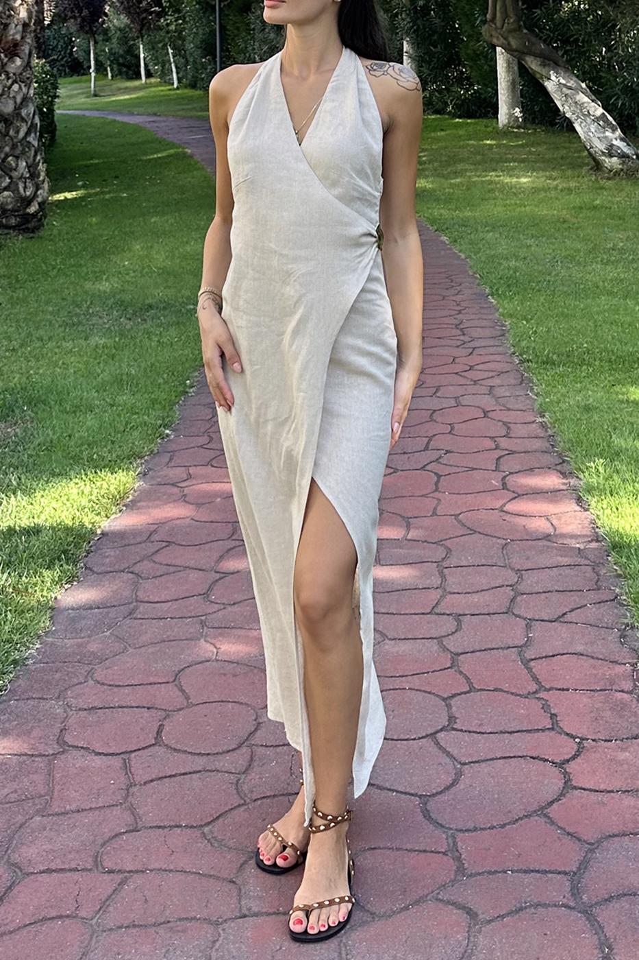 BSL Women Linen Decolette Dress - Hellevoetsluis