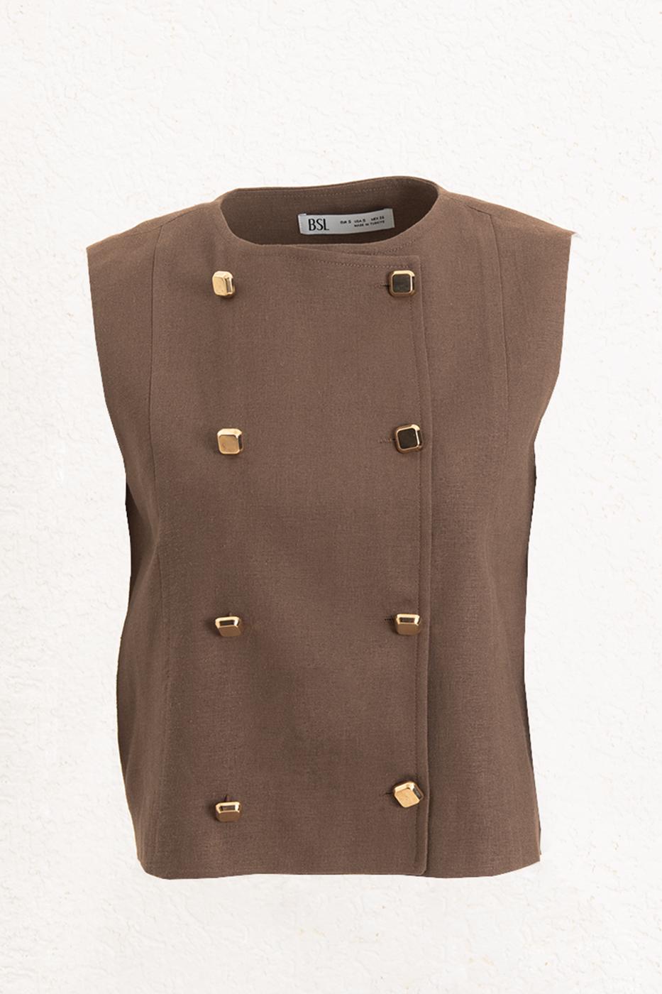 BSL Women Linen Round Collar Vest with Metal Button Detail - Korschenbroich