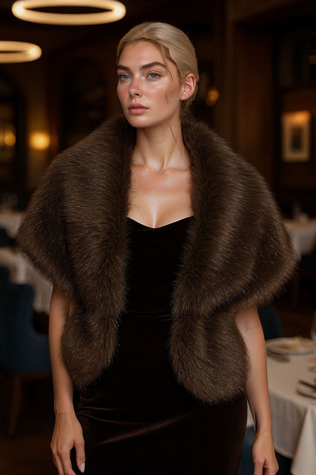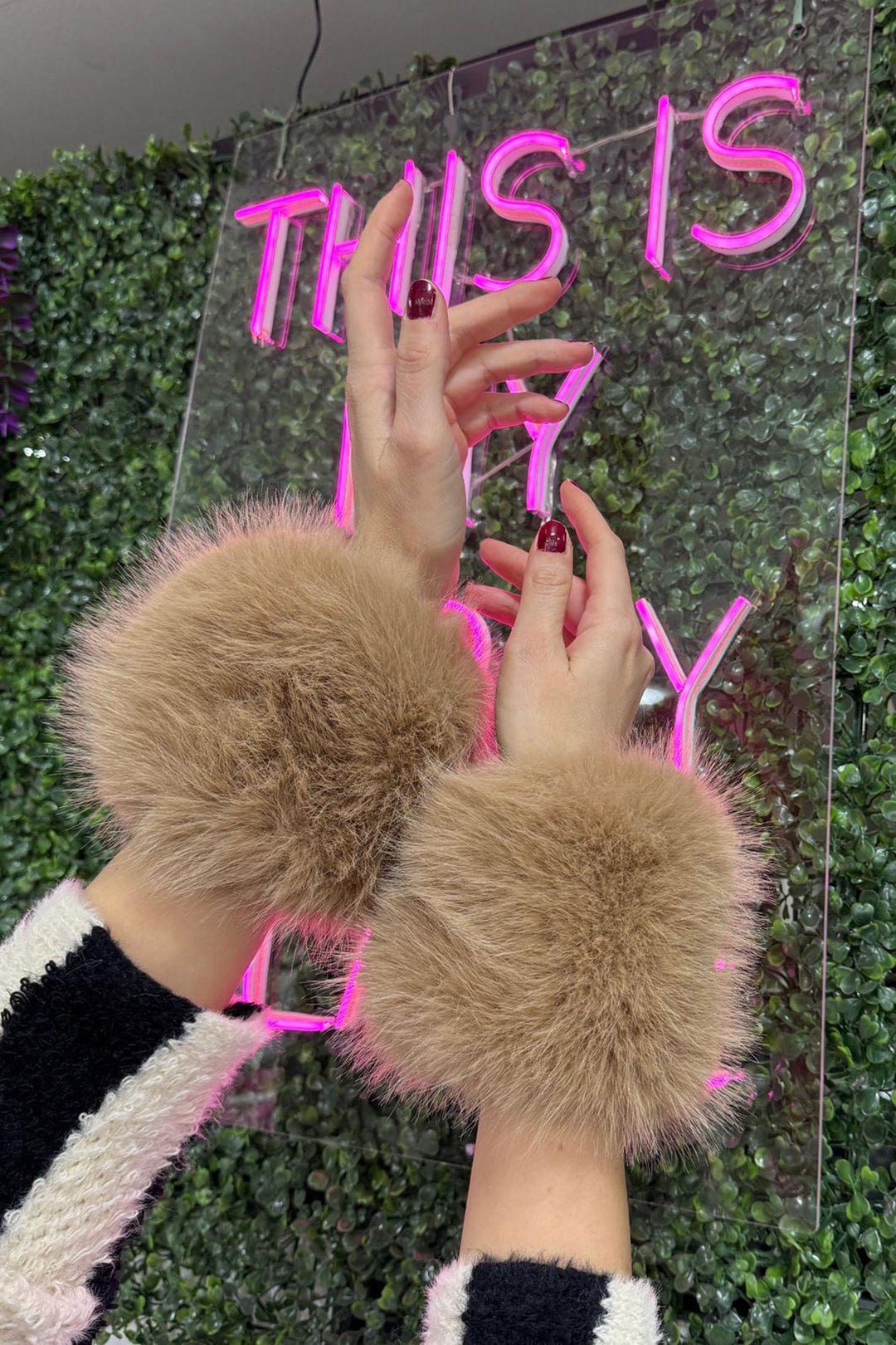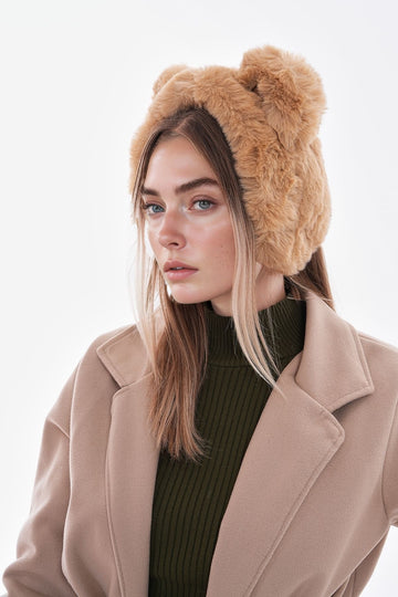 Camel Simulated Plush Faux Fur Neck Warmer BCNSV-25WT1020 - Ocuilan de Arteaga
