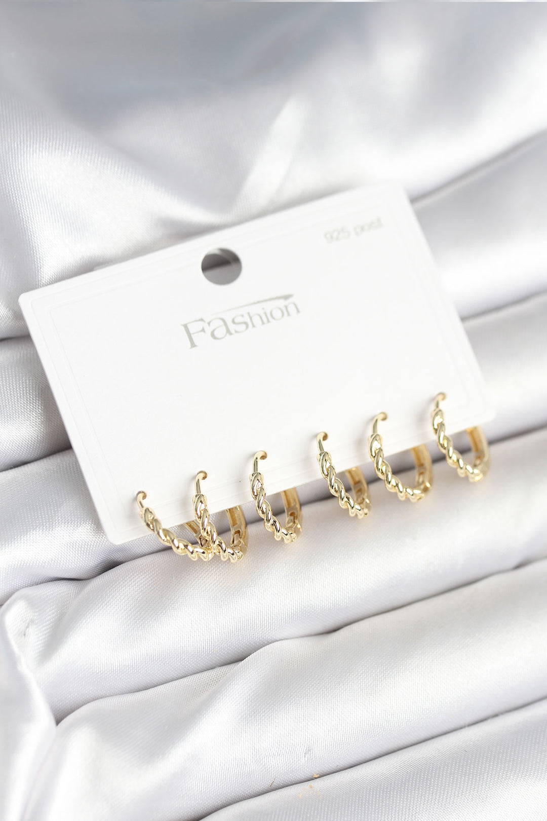 EBJ Gold Color Spiral Ring Model 925 Sterling Silver Studded Brass Earring Set - Nancy
