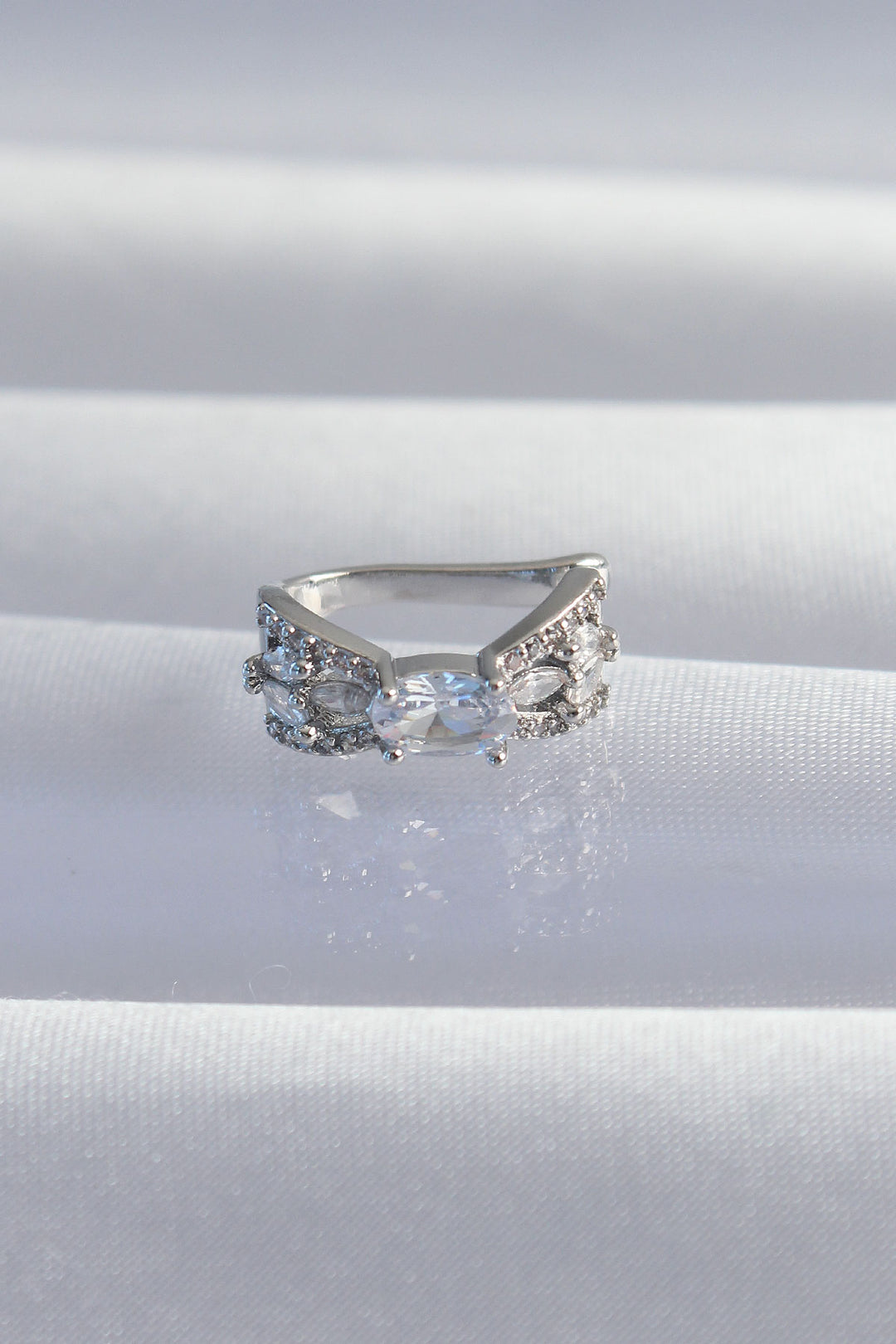 EBJ Rice Silver Color Zircon Stone Chevron Pattern Adjustable Ring - Moore