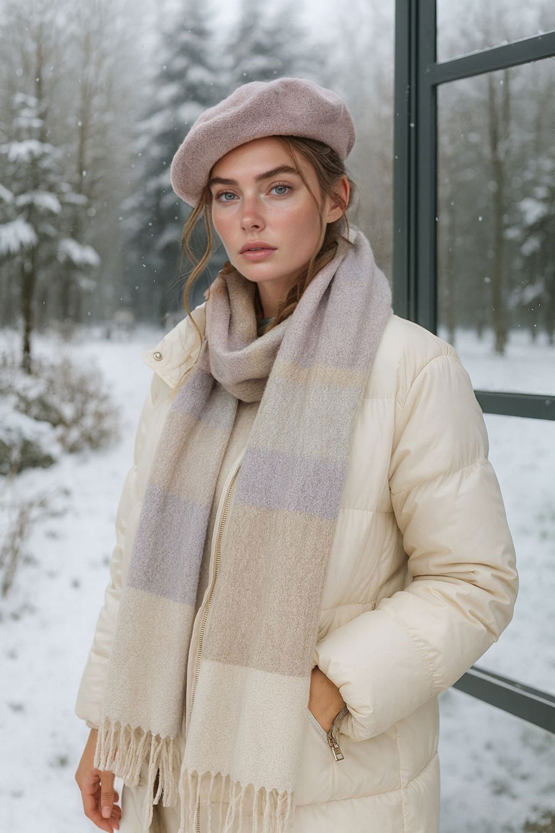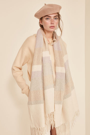 Ecru Thick Shoulder Scarf with Tassels BCNSV-25WT1036 - Odivelas