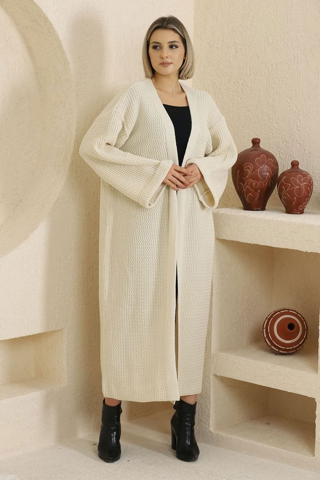 Ekru Double Sleeve Long Hijab Cardigan BCES-253000 - Leith