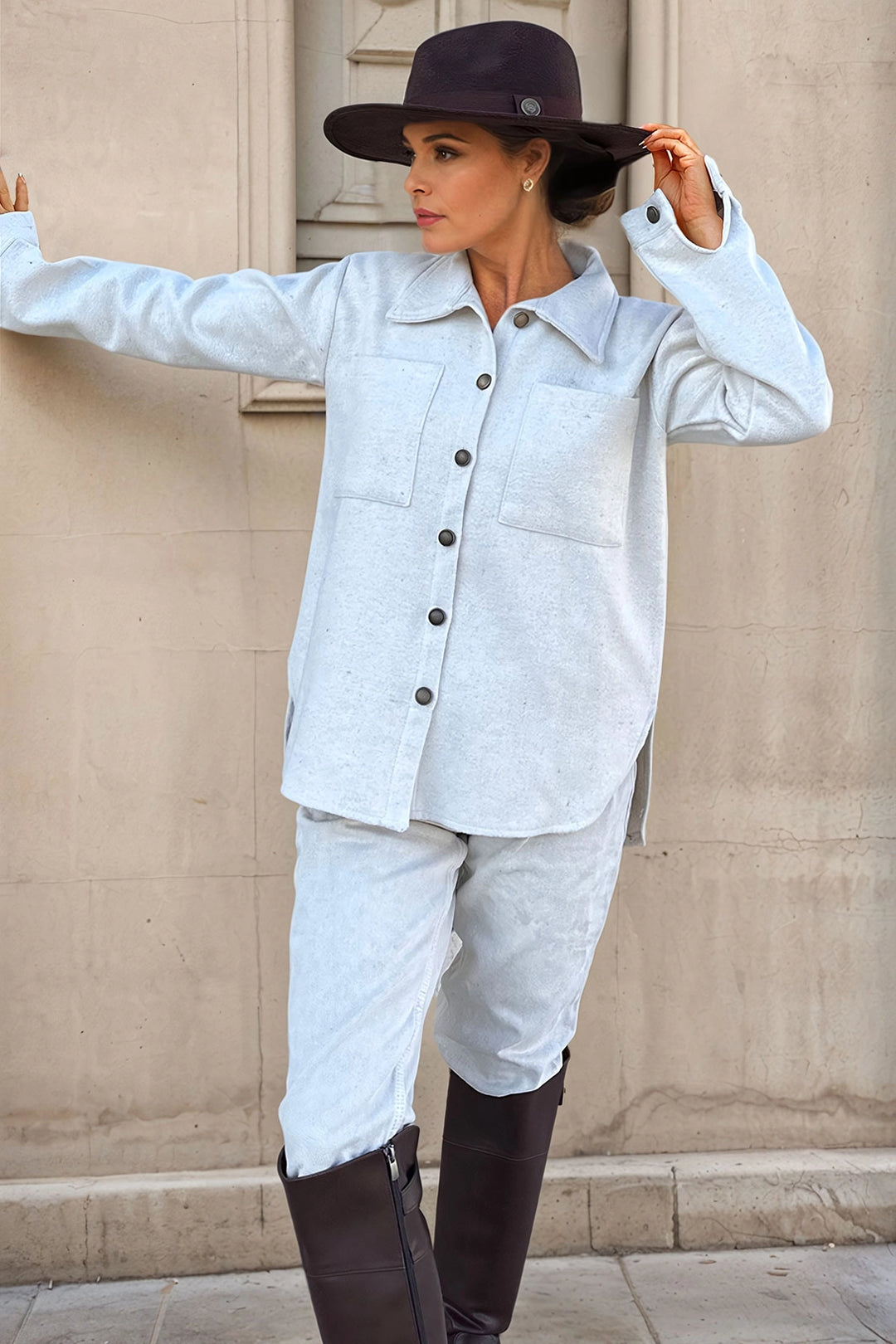 Ecru Stamp Oversize Double Pocket Jacket Shirt BCBSK-25700-3275 - Lemgo