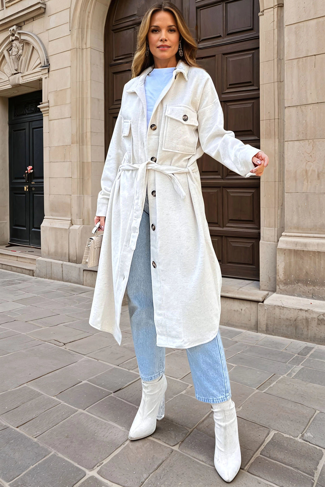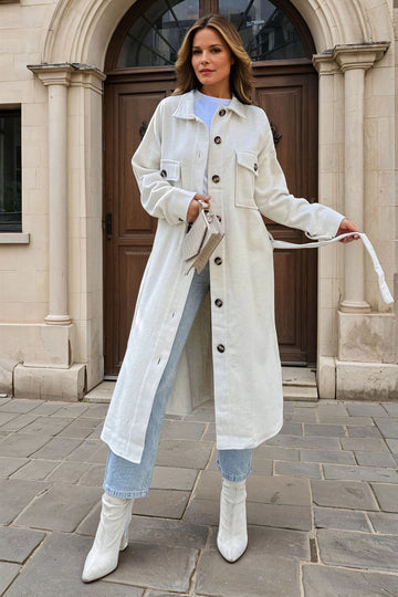 Ekru Self-Belted Double Pocket Buttoned Coat BCBSK-25700-3280 - Springfield