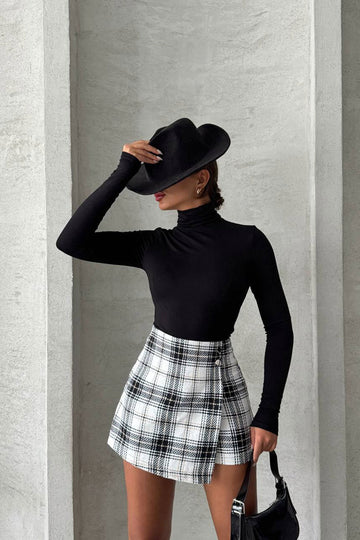 Ecru-Black 2-Button Tweed Fabric Shorts Skirt BCHN-2526414 - Erie