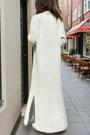 Ecru Turtleneck Knit Dress and Long Patterned Cardigan Set BCES-252040 - Dráma