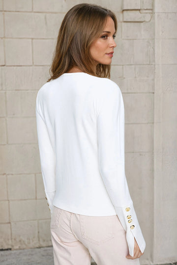Ecru V-Neck Color Block Buttoned Knit Blouse BCES-252013 - Bellevue