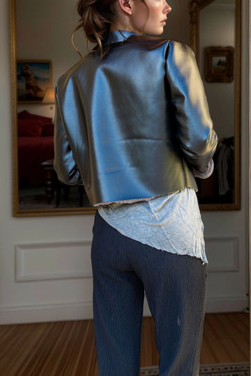 Anthracite Fur Lined Leather Crop Jacket BCBSK-25700-3301 - Delmenhorst