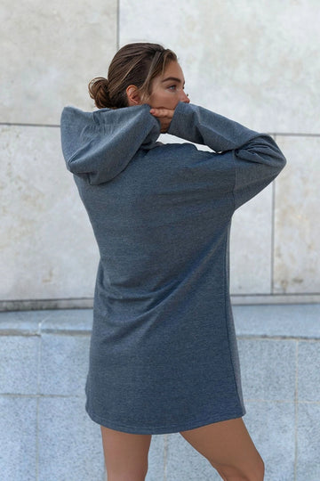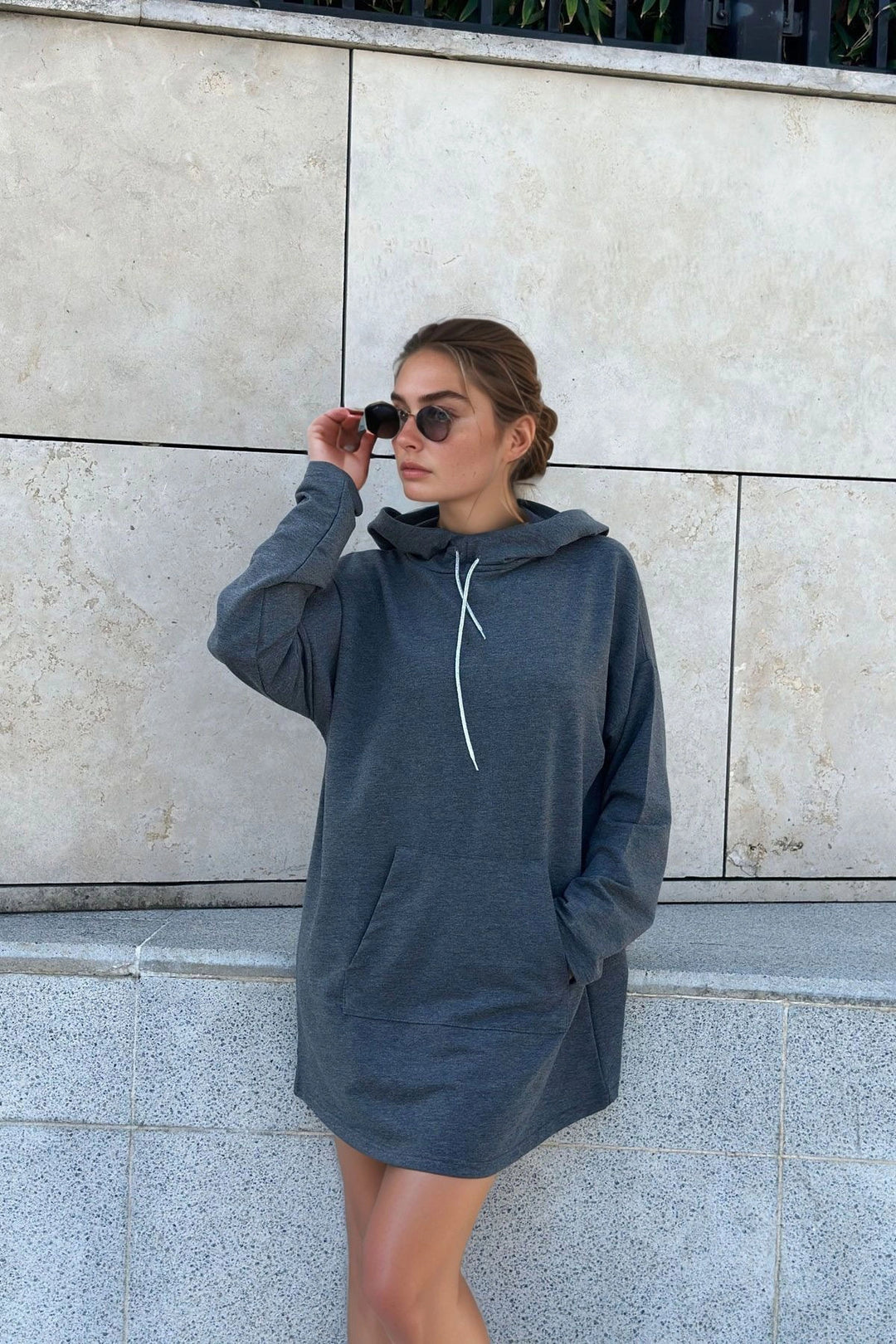 Anthracite Hooded Kangaroo Pocket Long Slouchy Sweatshirt BCBSK-25700-3476 - Andújar