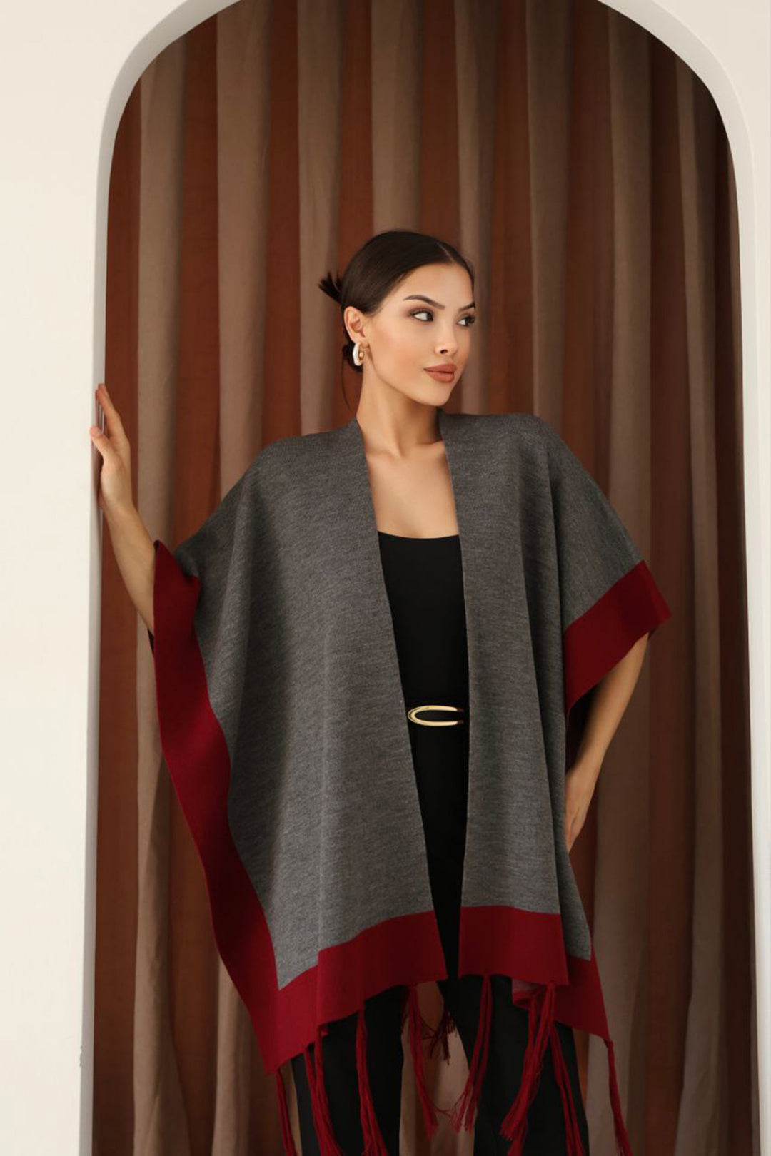 Anthracite Patterned Fringed Shawl BCNSV-2515239 - St. Cloud