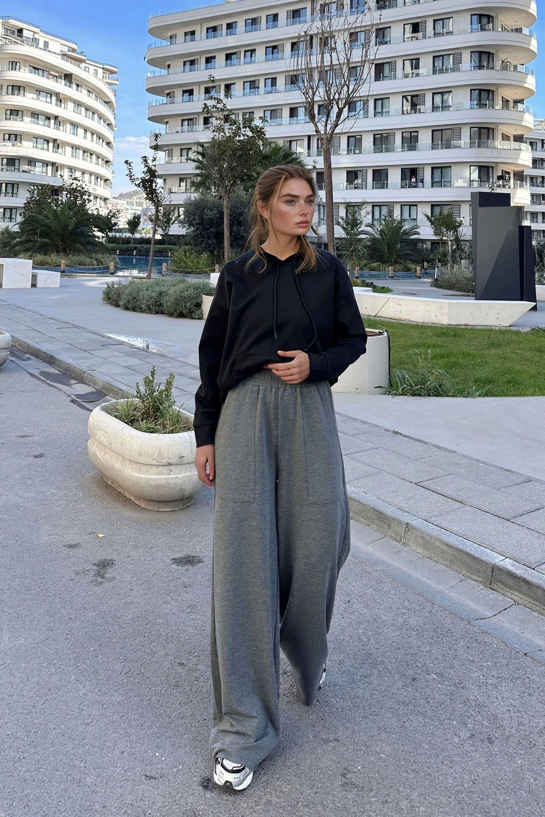 Anthracite Double Pocket Knitted Fabric Comfortable Fit Palazzo Pants BC25PKN03 - Acatlán de Pérez Figueroa
