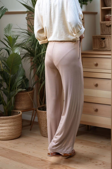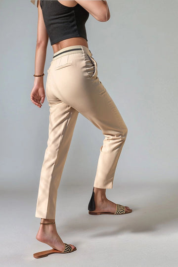 Beige Elasticated Muslin Woven Trousers BCBT-251007 - Pleasant Hill