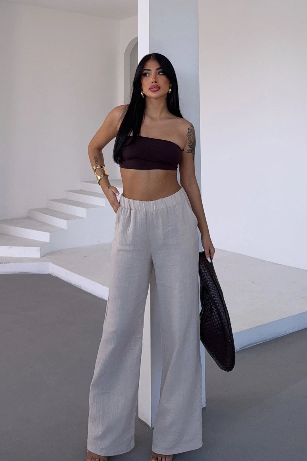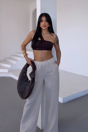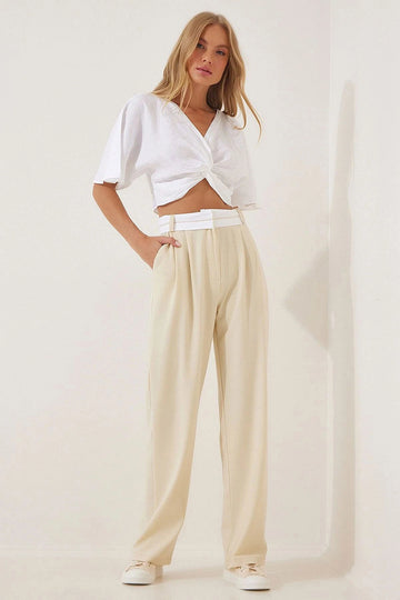 Beige High Waist Pleated Palazzo Pants BCDF-24CH1109 - Northampton