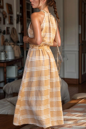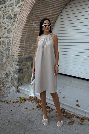Beige Hidden Pocket Summer Linen Woven Dress BCDF-25255029 - Gosport