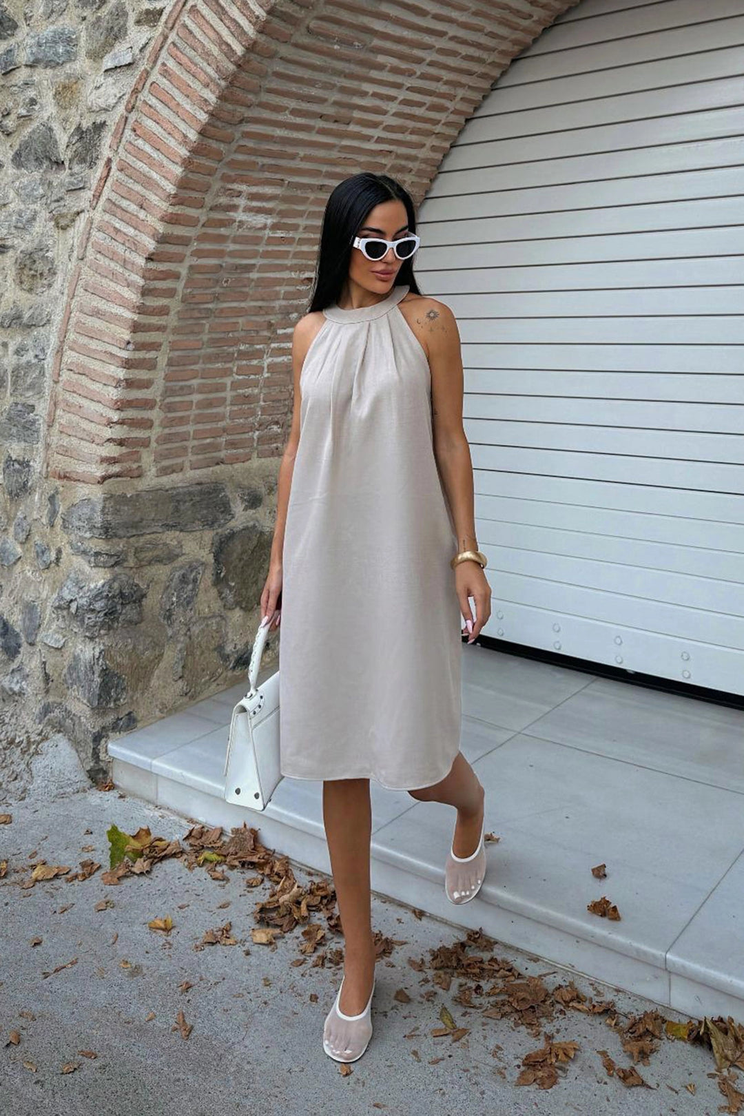 Beige Hidden Pocket Summer Linen Woven Dress BCDF-25255029 - Palencia