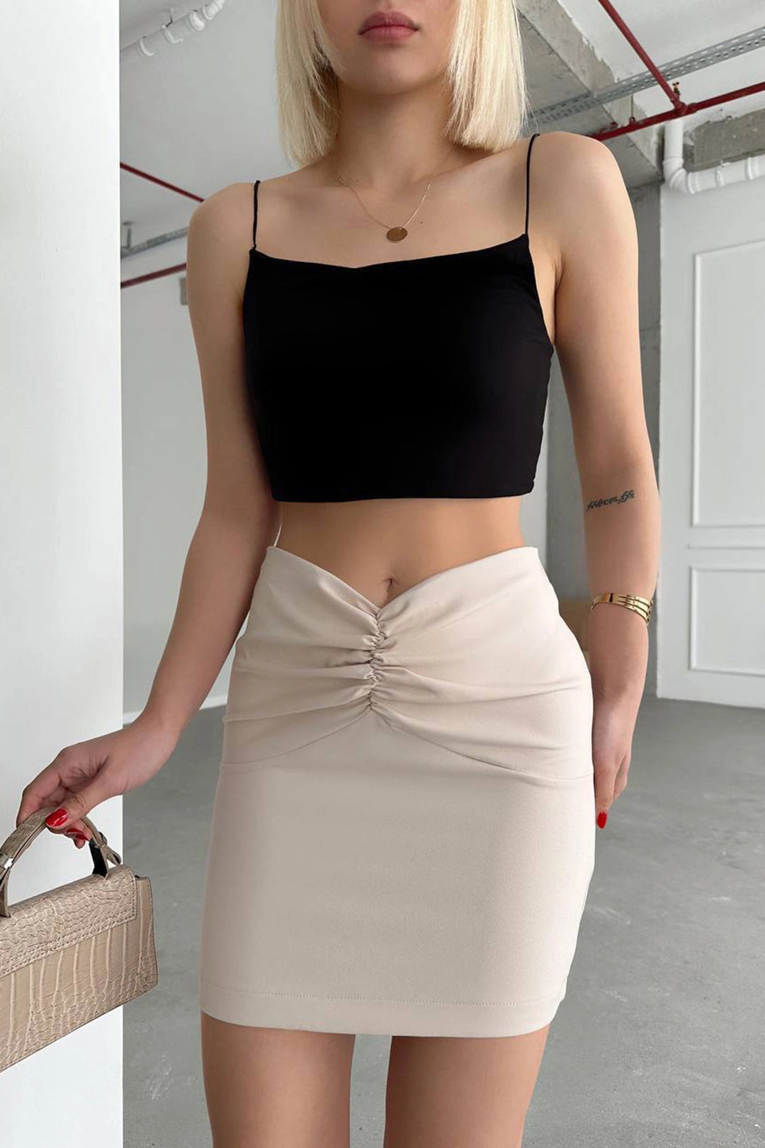 Beige Front Ruched Knitted Skirt BCHN-2525222 - Acámbaro
