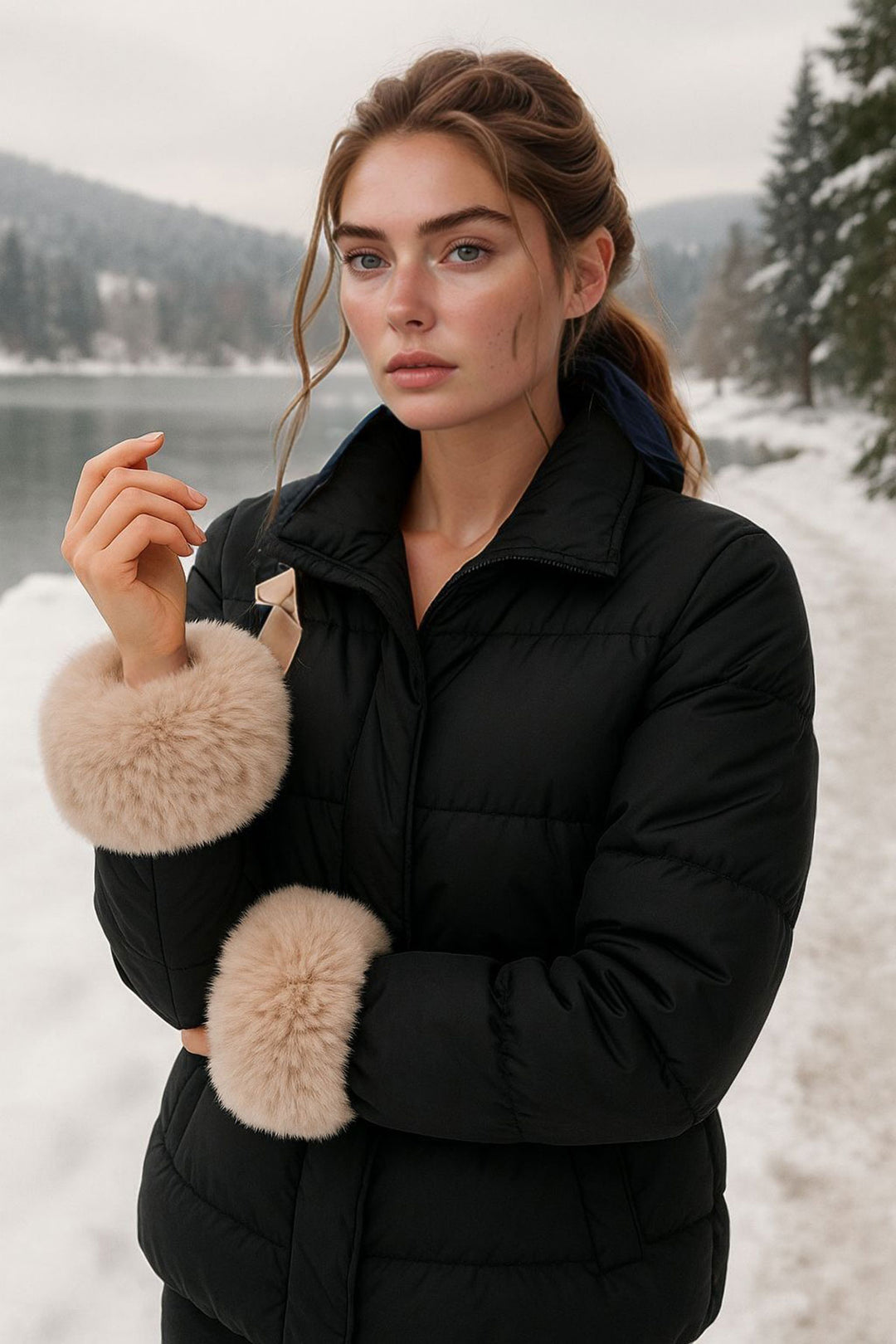 Beige Faux Fur Cuff BCNSV-25WT1008 - Isla