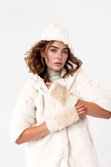 Beige Furry Woolen Fingerless Gloves BCNSV-25WT1004 - Kilmarnock