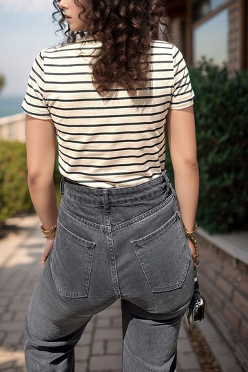 Beige High Waist Belted Striped Trousers BCBSK-25700-3186 - Warendorf
