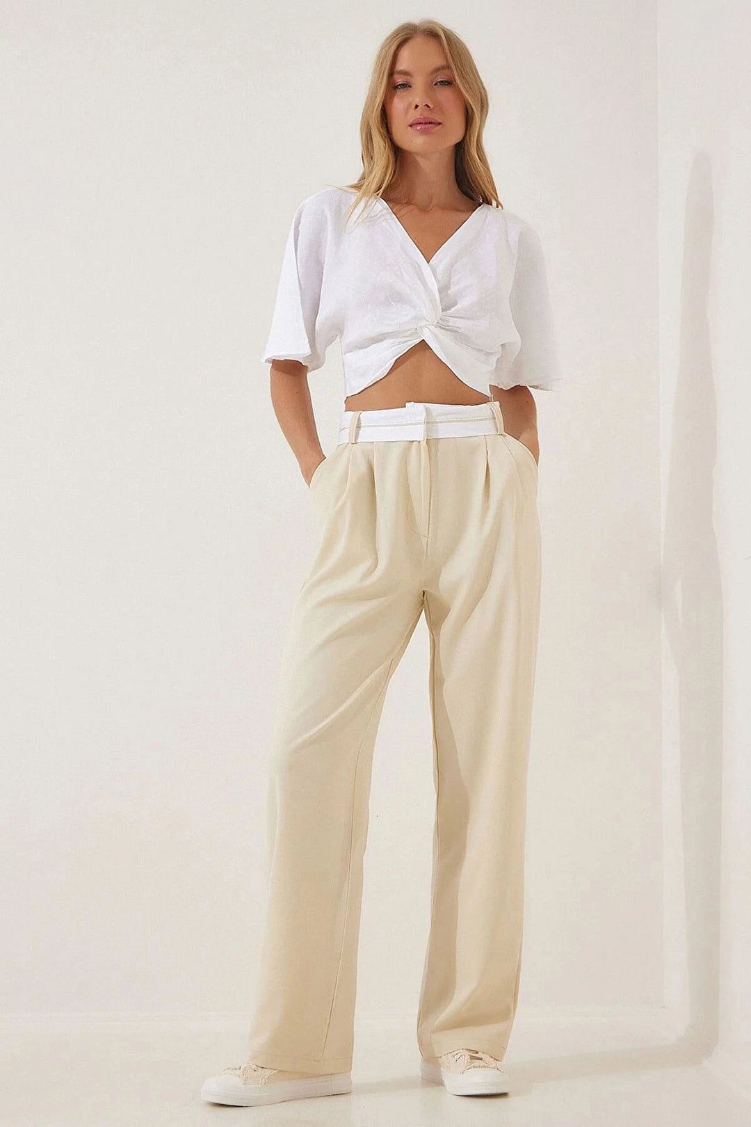 Beige High Waist Double Pocket Palazzo Pants BCBSK-25700-K7220 - Germering