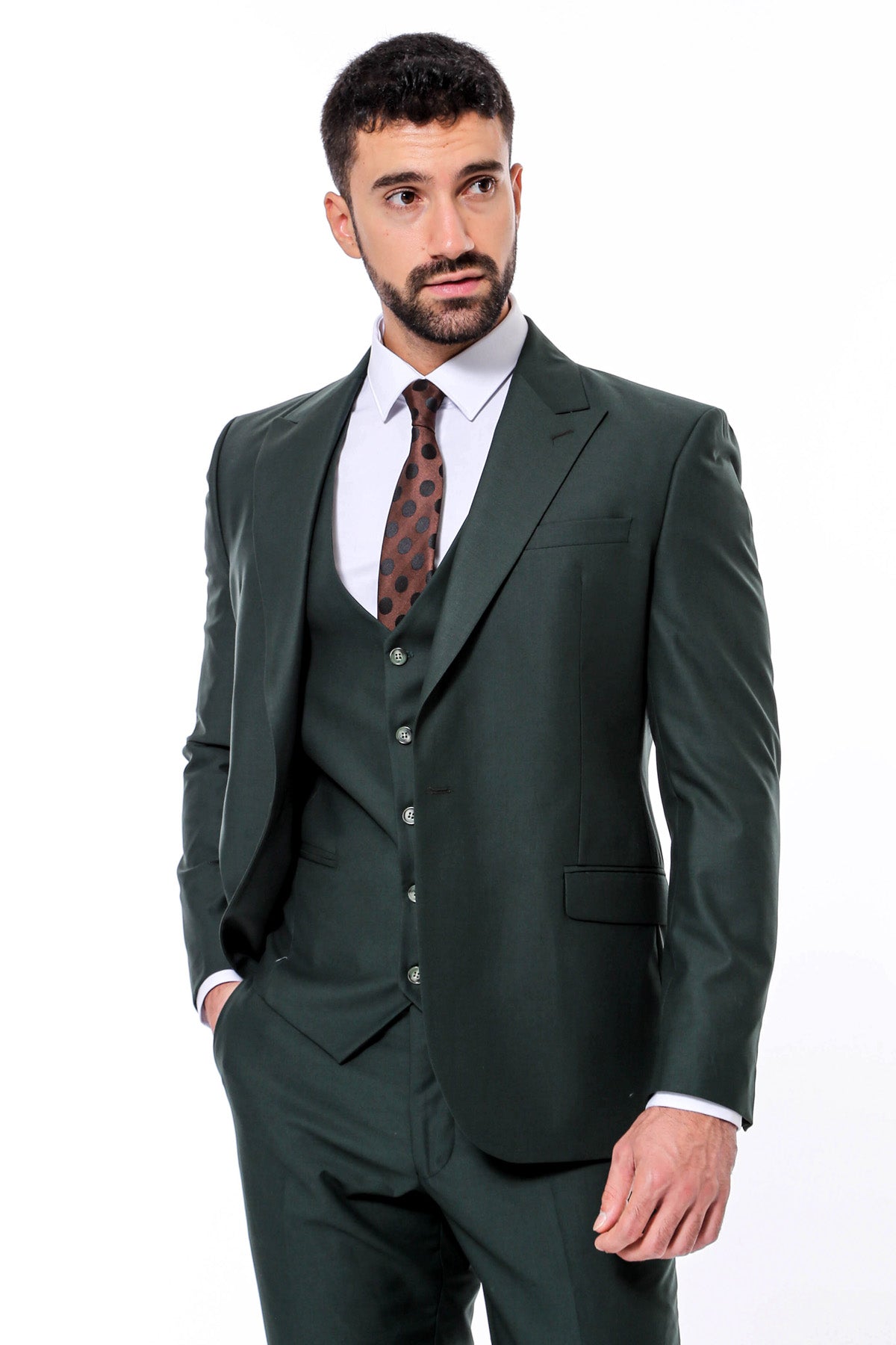 WSS Green Men's Plain Suit with Vest - Tuscaloosa