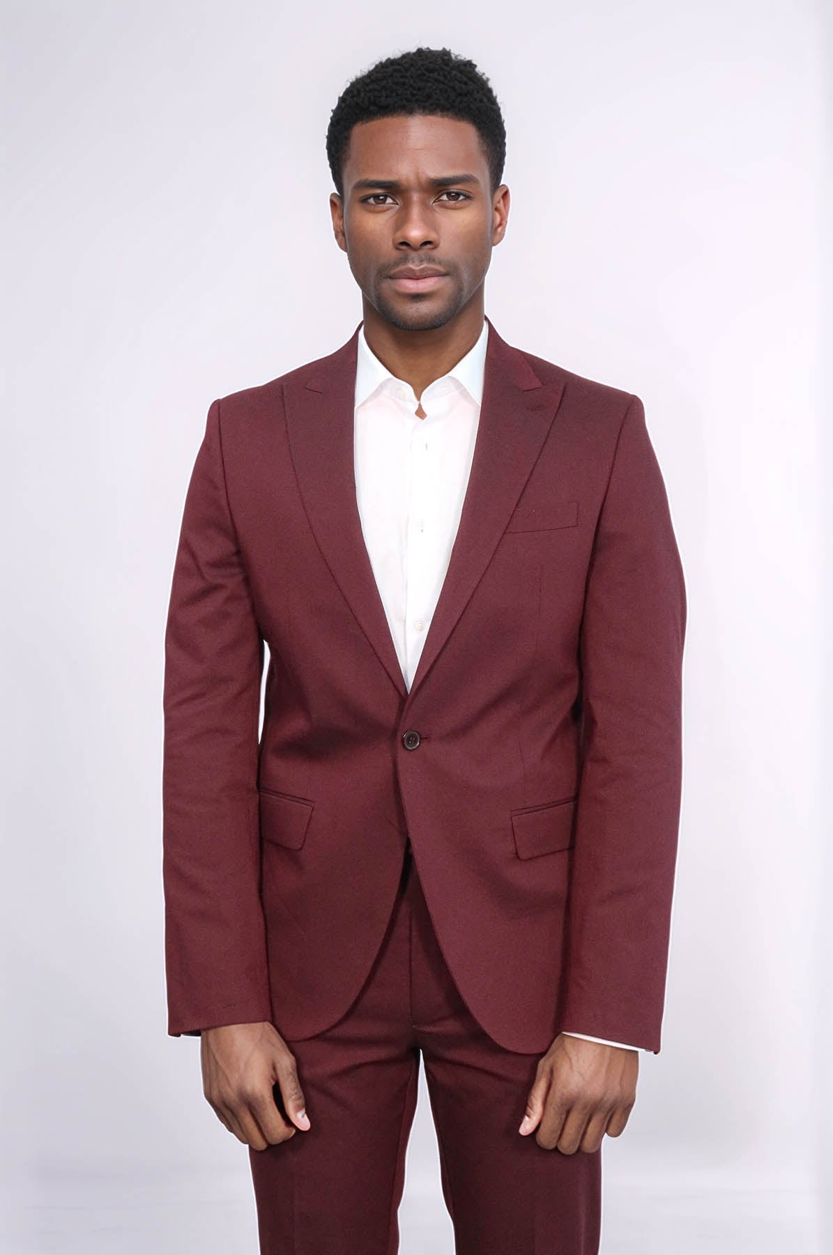 This single button 2-piece burgundy men's suit by Wessi is a timeless classic. With its elegant design and sophisticated color, this suit exudes confidence and professionalism. Made with high-quality materials, it provides a comfortable fit and long-lasting durability. Perfect for any formal occasion or business setting.