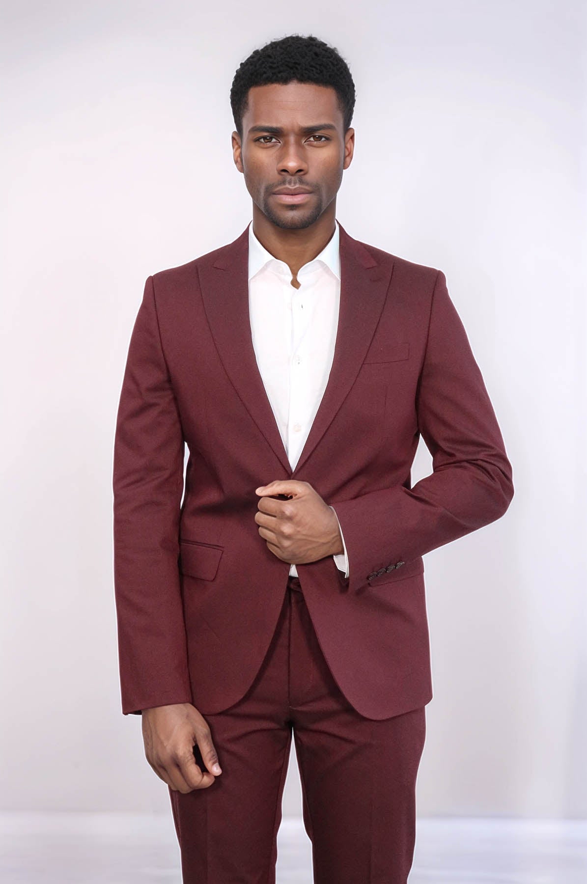 WSS Single Buttons 2 Piece Burgundy Men Suit - Ahrensburg