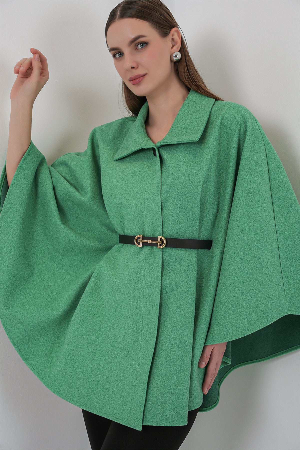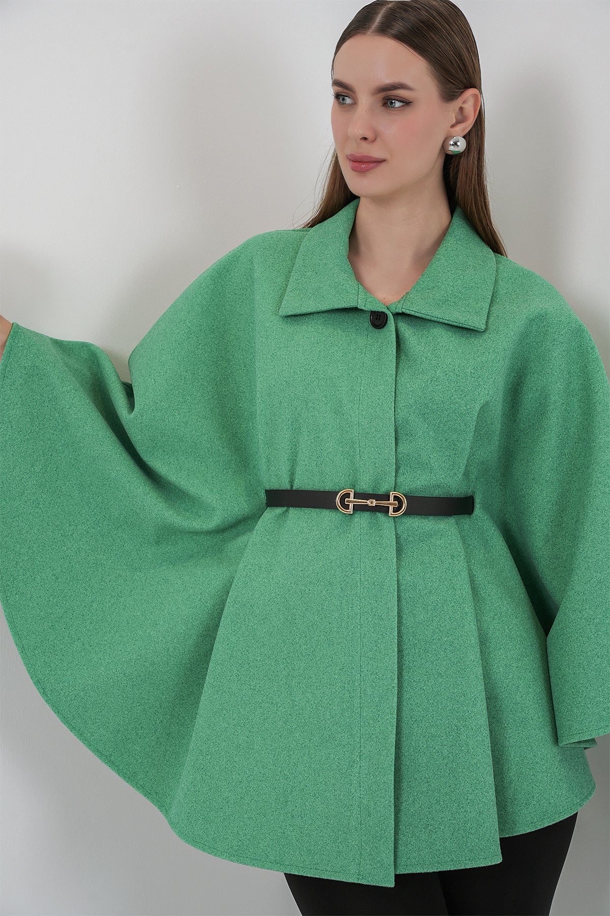 BGD Women Women's Belted Cape Coat 9170 - Green - Dover