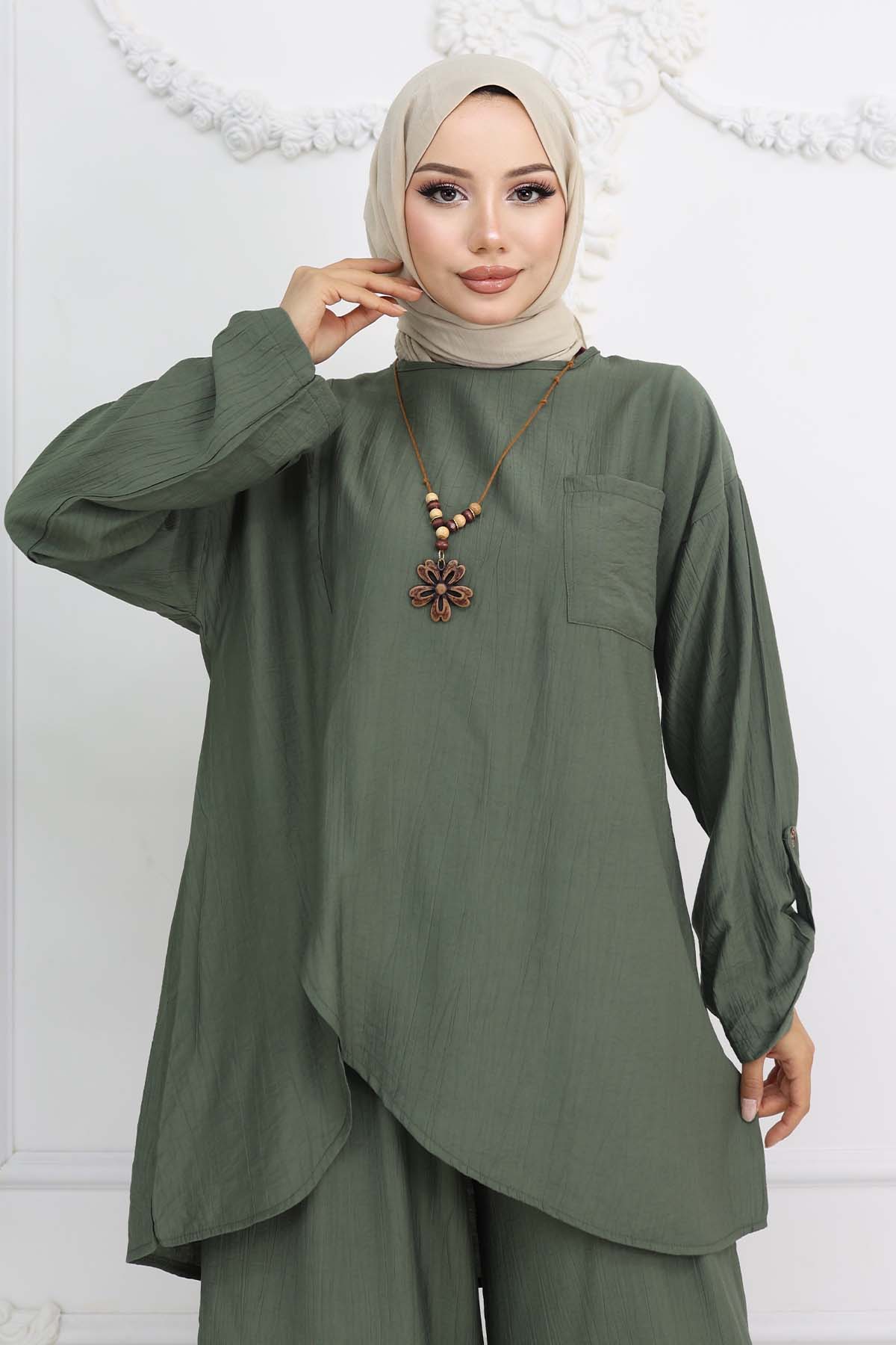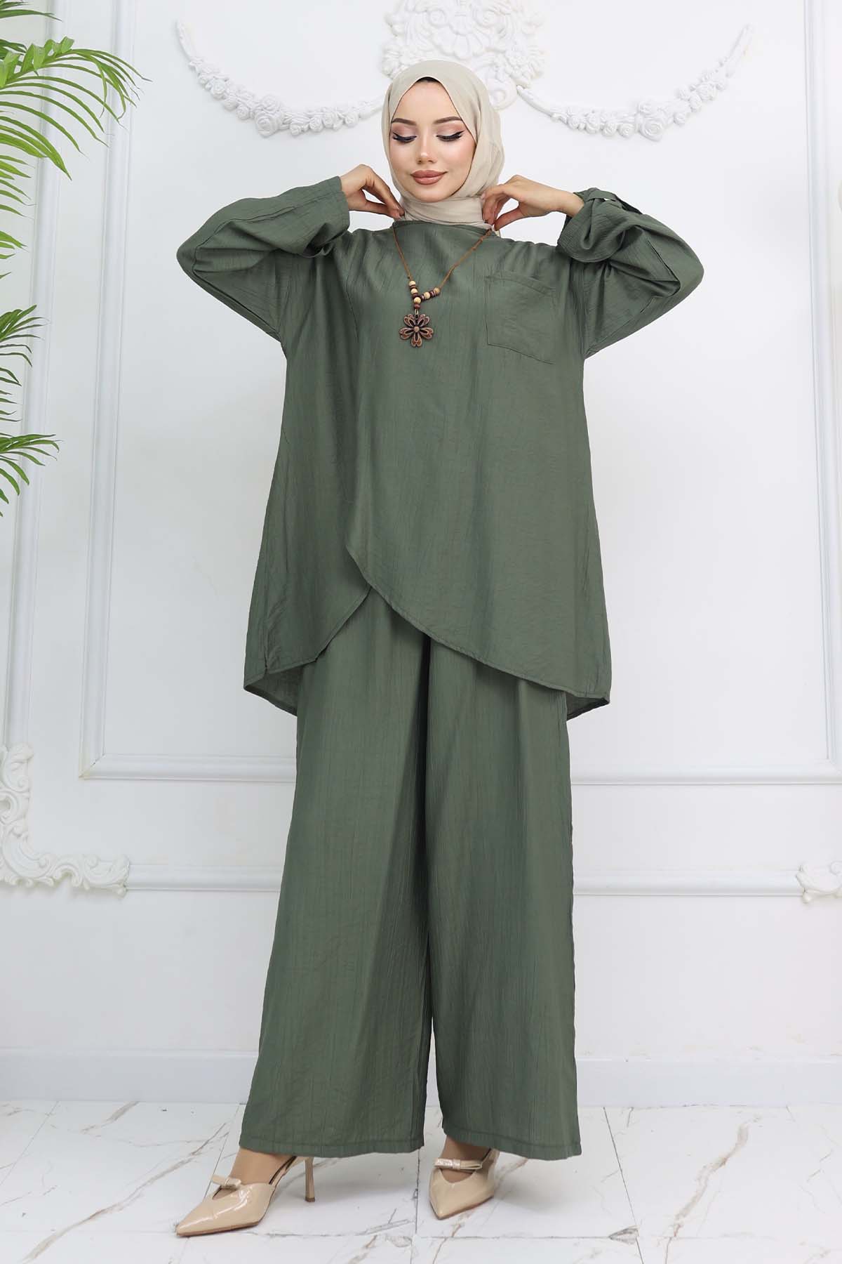 BNG Women Button Detailed Necklace Set Khaki 4782 - Danville