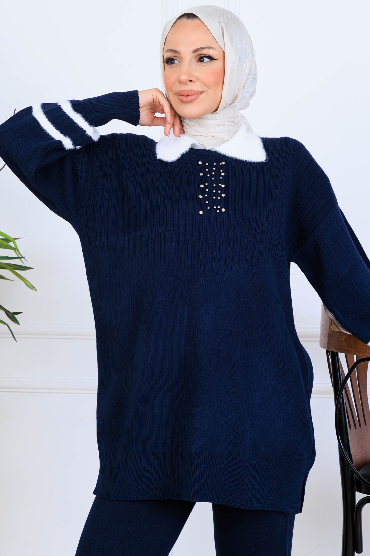 BNG Women Taş İşlemeli Triko Takım S1009 Lacivert - Hot Springs
