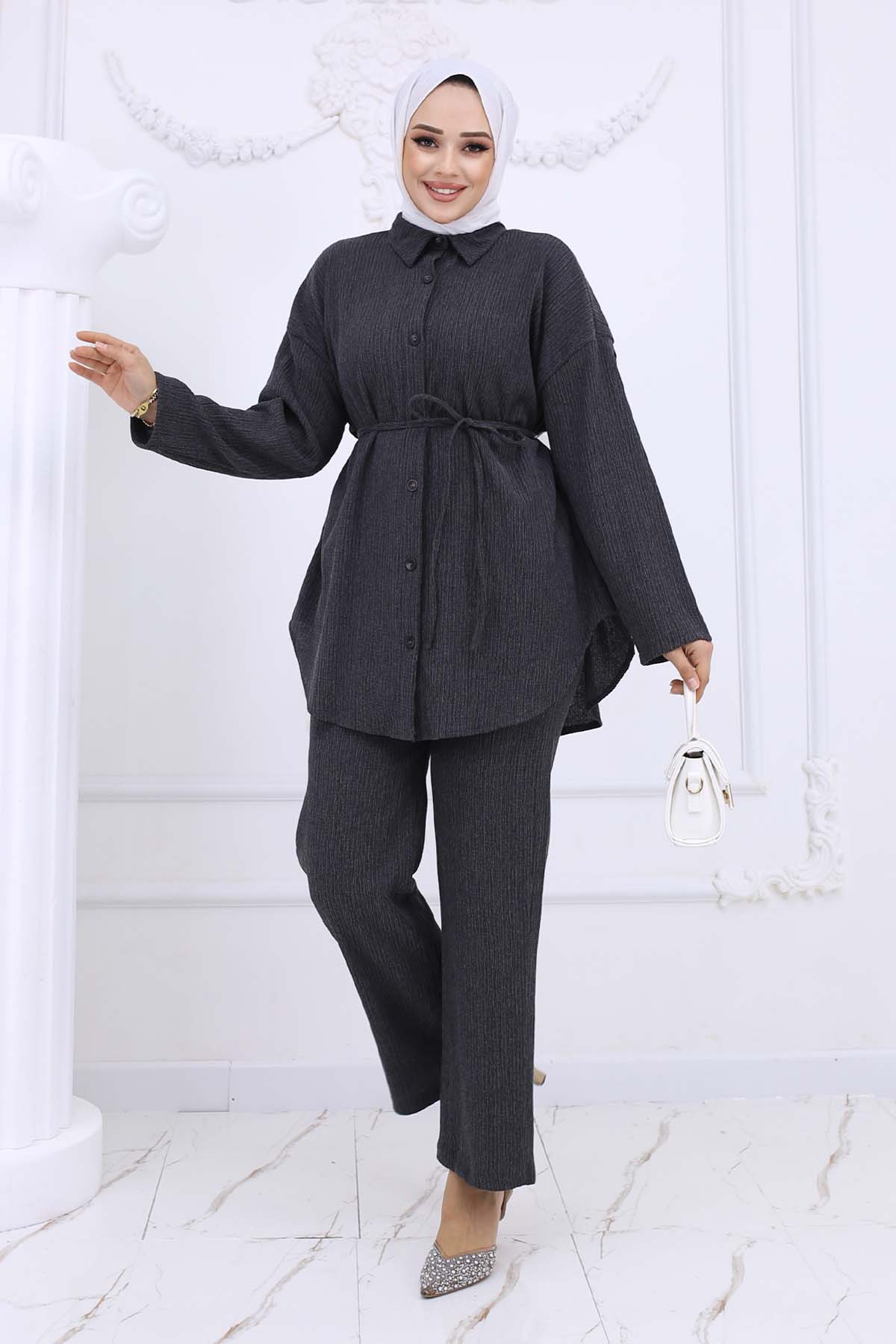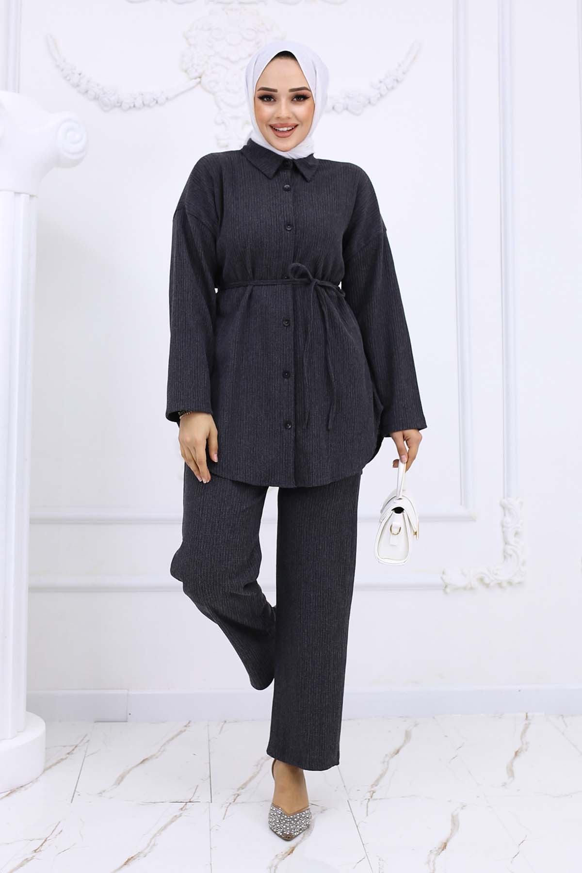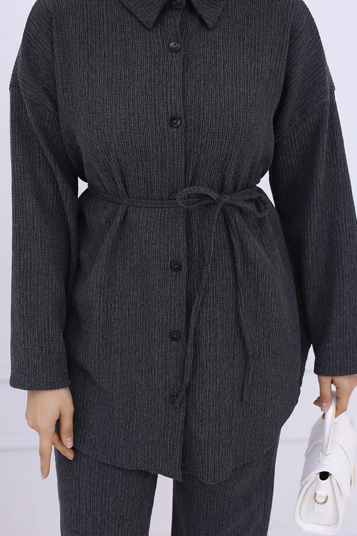 BNG Women Waist Belted Bürümcük Two-Piece Set Anthracite 2193 - Santa Monica