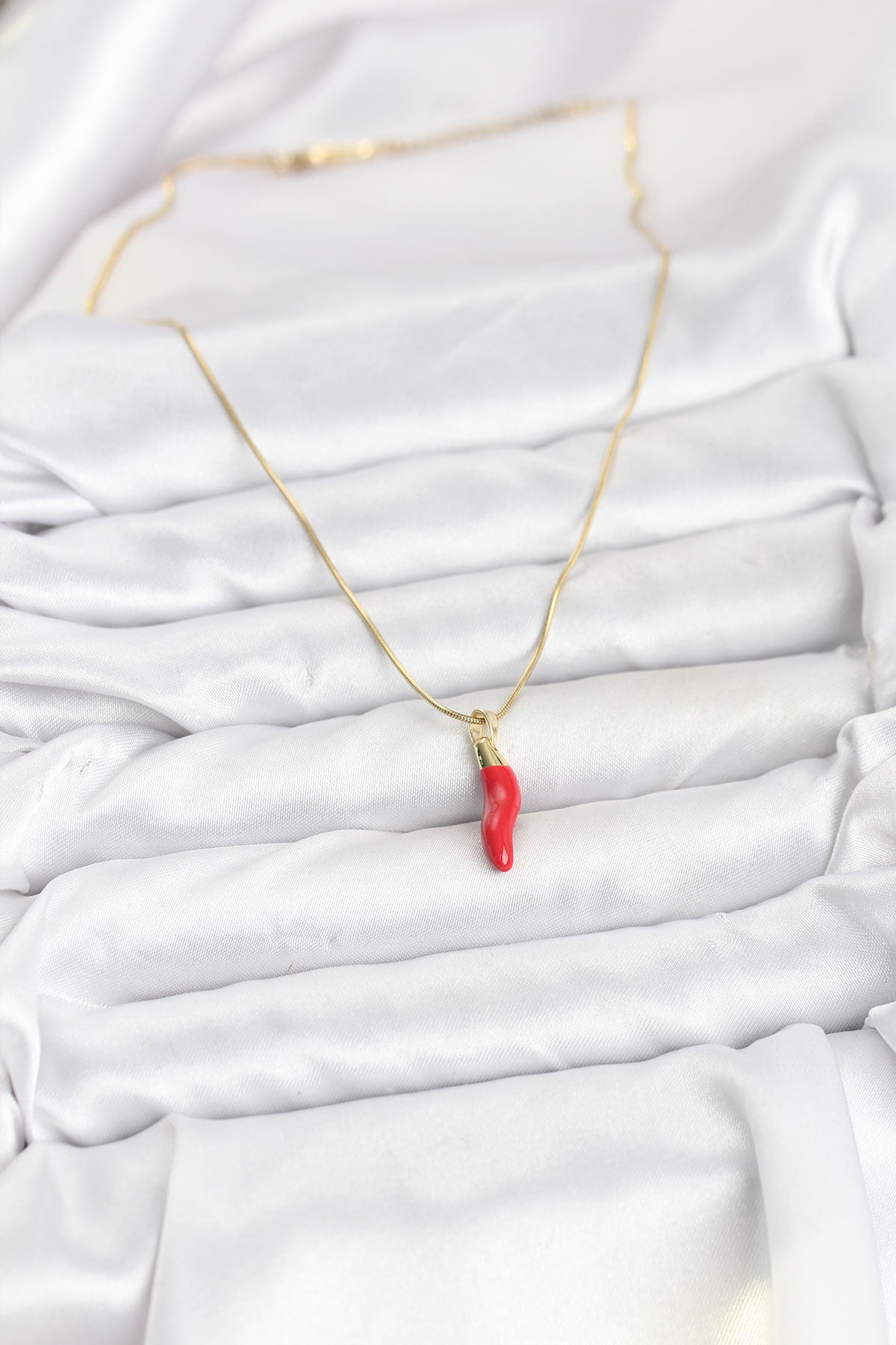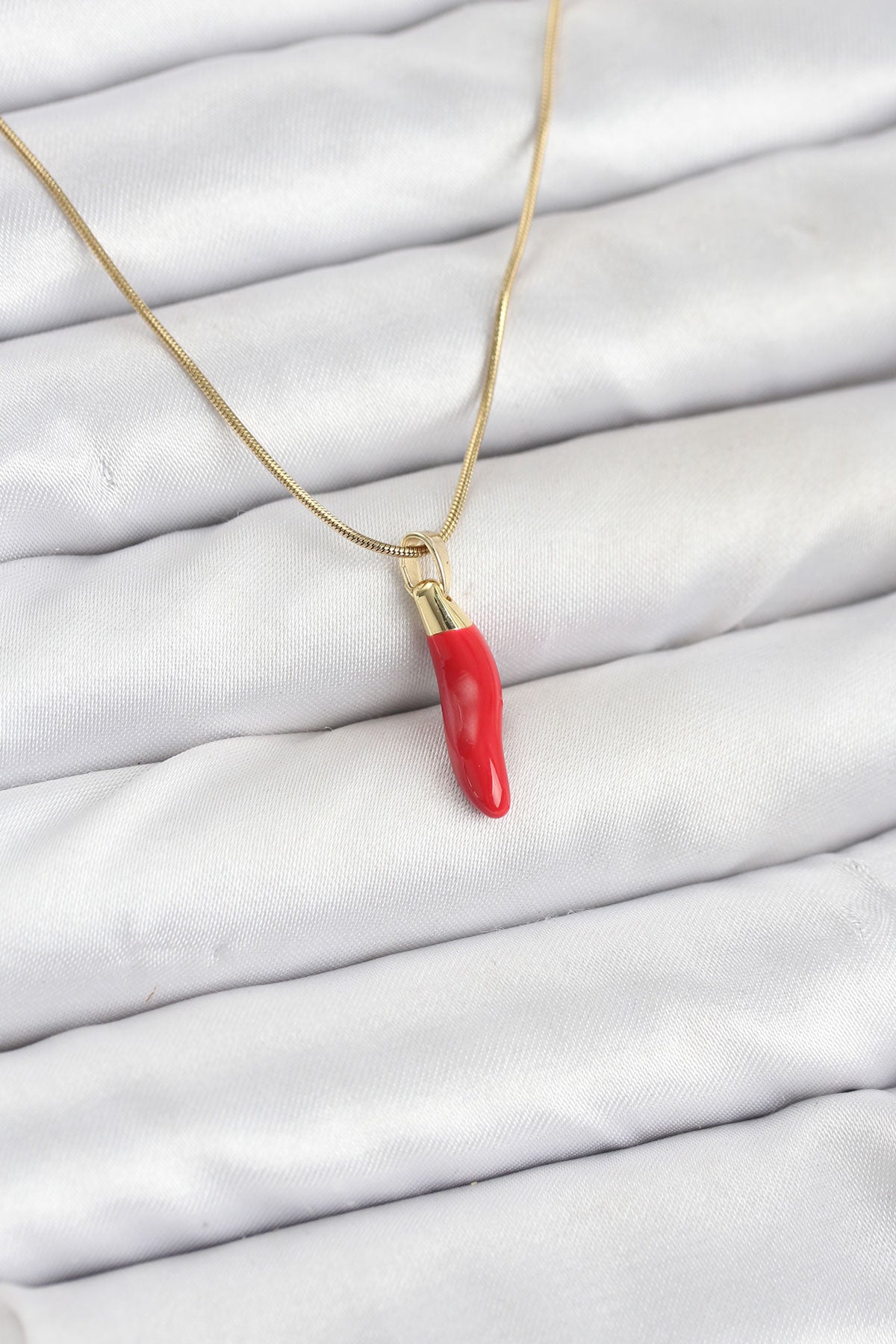 EBJ 316L Çelik Gold Renk Kapya Kırmızı Biber Model Kadın Kolye - Bristol