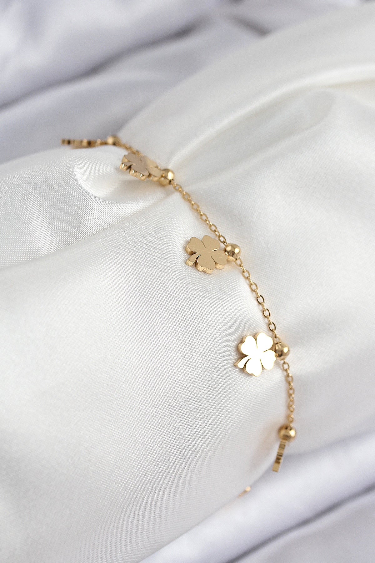 EBJ 316L Çelik Sıralı Yonca Model Gold Renk Kadın Bileklik - Palaiseau