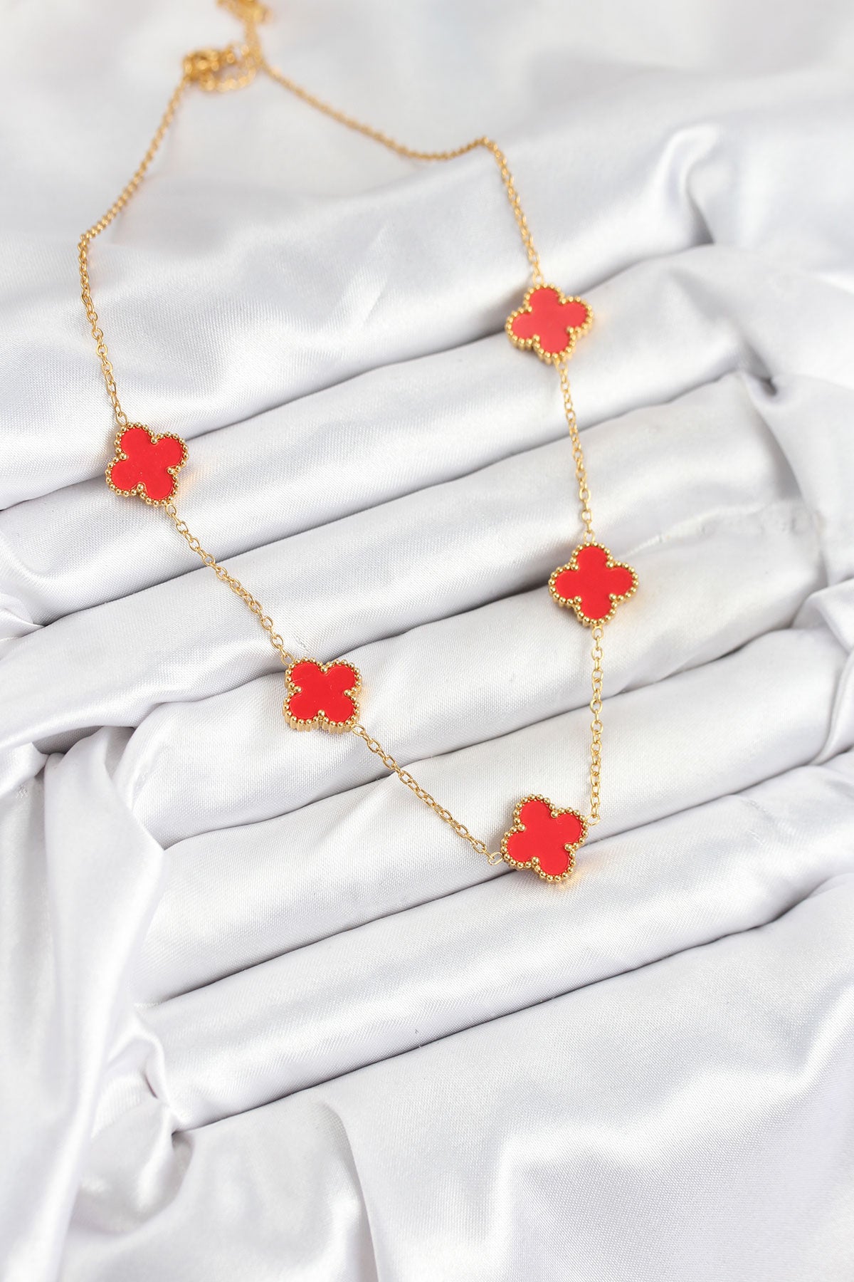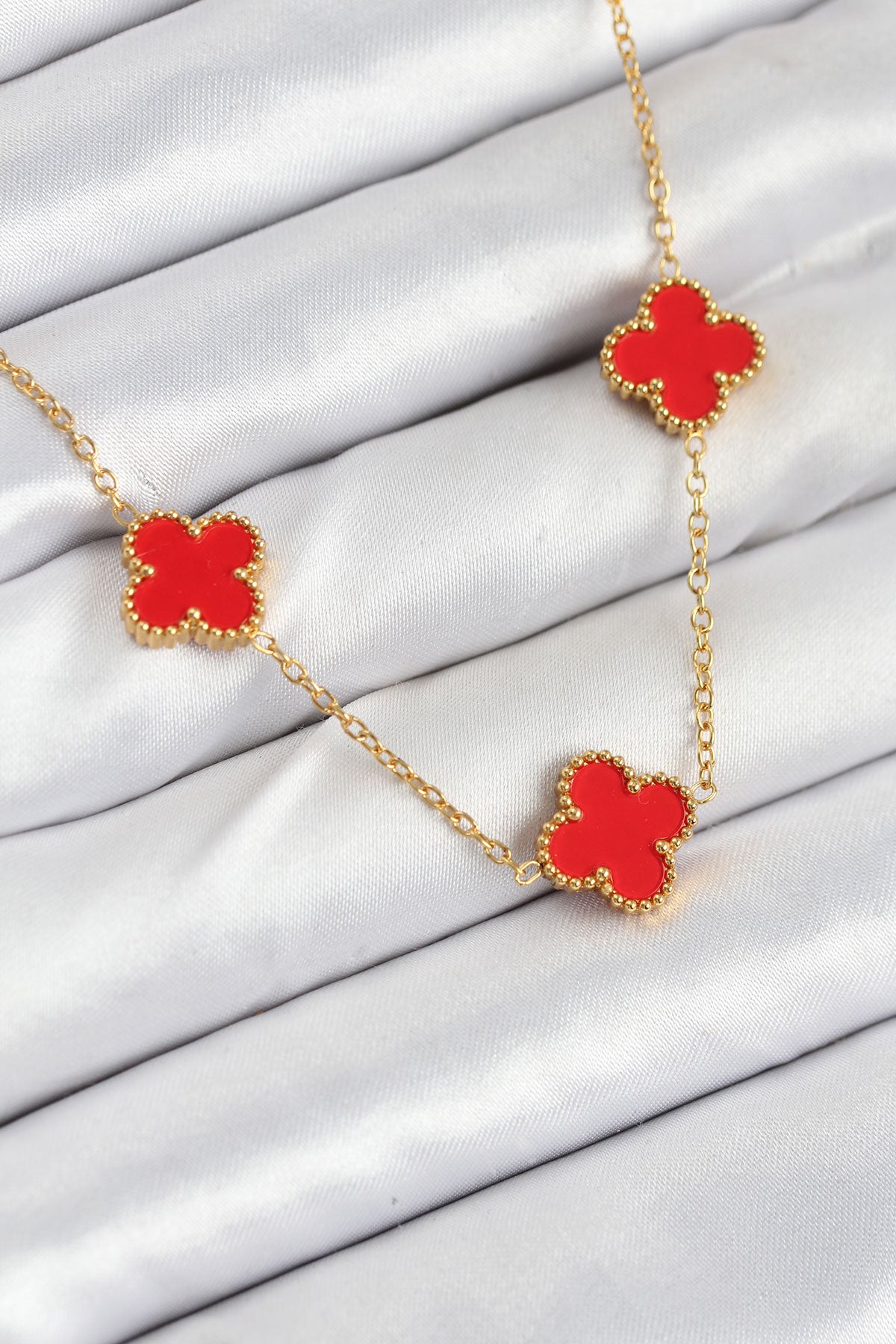EBJ 316L Çelik Zincir Gold Kırmızı Renk Yonca Kadın Kolye - Birmingham